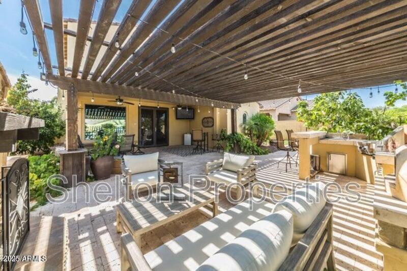 Nestled in the desirable Main Street District of Verrado, this highly upgraded and cozy home is absolutely stunning! Located on the eastern side of Verrado, directly across the street from a beautiful park, the location is unbeatable. The gourmet chef's kitchen is a true masterpiece, having been fully remodeled to feature top-of-the-line Thermador appliances and a spectacular, one-of-a-kind walnut island. Luxury touches abound, including engineered hardwood flooring throughout and fresh paint on both the interior and exterior. Your backyard is an absolute entertainer's dream, featuring a fun splash pad, an outdoor pizza oven, a professional Viking gas grill, a fireplace, an outdoor TV, and a professional misting system! Residents enjoy all the amazing amenities Verrado offers: local restaurants, shops, multiple community pools, a fitness center, tree-lined streets perfect for front porch gatherings, and over 21 miles of scenic hiking trails. This home is truly luxury living at its finest!