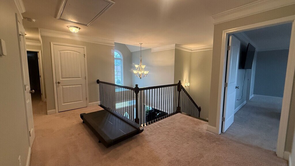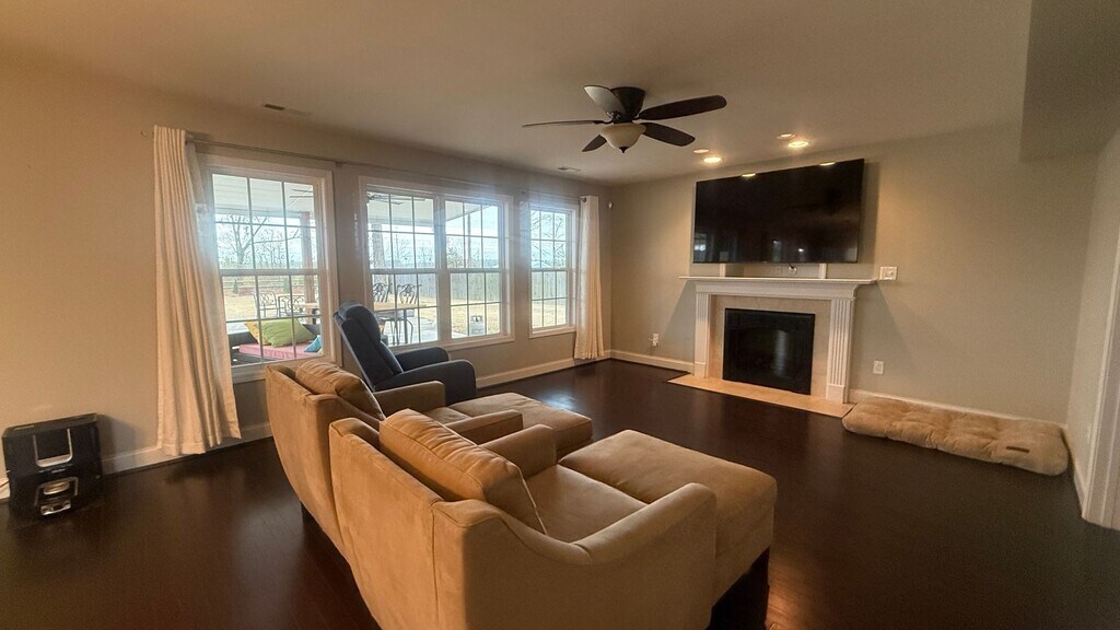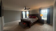 Absolutely gorgeous 3 BR + Bonus/Media Room (upstairs) + Office/Den (downstairs) in a quiet Rockfish neighborhood convenient to Fayetteville/Ft Bragg. Custom touches throughout to include hardwoods downstairs. Luxury kitchen with stainless steel appliances, tile back splash, granite tops, Island, built in desk and large butlers pantry. Formal dining, grand entrance foyer, beautiful great room overlooking the lovely rear yard. Spacious owners suite with closet built ins, walk in shower, garden tub, dual vanities and so much storage space. Upstairs laundry comes equipped with washer and dryer and more storage space. Bedrooms 2 and 3 share a Jack and Jill bath with separate vanity and shower/commode area. All bedrooms upstairs. Huge rear covered patio with TV and seating, in-ground pool, fire pit, storage shed and fenced rear yard. Whole house water softner. You will not want to miss this one. 1 year lease.