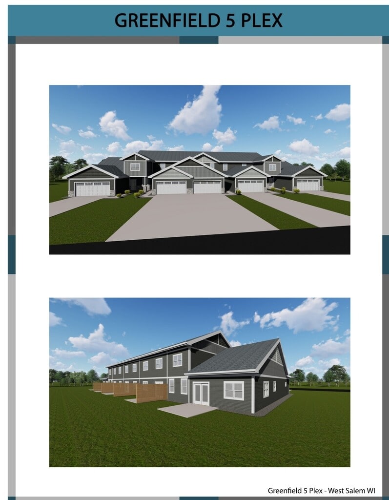 378 Panther Pass (End Unit) • First floor master bedroom with master bath and walk-in closet • Second floor bedroom 2 • Second floor bedroom 3 • Second floor full bath • First floor 1/2 bath • First floor laundry • Entry Coat Closet • Washer/Dryer Hook ups • Attached Garage • Private patio • Exterior timed security lighting Luxury Townhomes in Greenfield are beautifully crafted and ready to become your new home. Located in the newly developed Greenfield Addition, West Salem, WI. A family friendly safe neighborhood located near the schools. Each unit is designed with an open concept and features 3 bedrooms and 2.5 bathrooms. Each master bedroom includes a master bathroom and walk-in closet. These homes feature 9-foot ceilings and luxury finish details including premium flooring and cabinetry. Appliances include stove, refrigerator, dishwasher, washer & dryer hook ups. Each home has a patio door and outside patio with privacy fencing and a 2-car attached garage. Non-Smoking. Pet Friendly With Deposit. Lawn care, snow removal, garbage and recycling included. High speed internet available. Link to YouTube walkthrough: