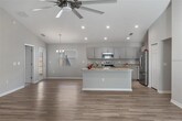 Welcome to The Begonia,an award-winning Highland Homes floor plan offering comfort,style,and energy efficiency. This beautifully designed home features an open-concept layout with soaring volume ceilings,a spacious great room,an elegant dining area,and a modern kitchen with Aristokraft cabinetry,Samsung stainless steel appliances,a counter-height breakfast bar,LED recessed lighting,and wood-look vinyl plank flooring in main areas. The luxurious owner’s suite includes a large walk-in closet and a private en-suite bath with dual vanities and a tiled shower. Enjoy outdoor living on the charming front porch or the covered lanai. Additional highlights include stain-resistant Mohawk carpeting in the bedrooms,built-in pest control,Florida-friendly landscaping with irrigation,a walk-in pantry,and energy-saving features such as R-30 attic insulation,foam-injected block walls,Low-E double-pane windows,and a programmable thermostat. This home is the perfect blend of modern design and practical living. Schedule your showing today!