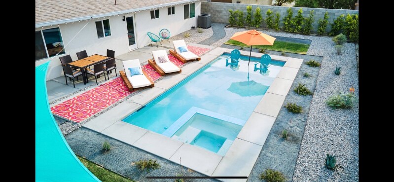 Property Id: 1745142 Fun, quirky, comfortable oasis just minutes from Downtown Palm Springs. Shopping, restaurants, and more! We have a heated pool/SPA, a sauna/cold plunge/weights in our "wellness" room (it's the garage), and a home theater for movie nights. We love this house!