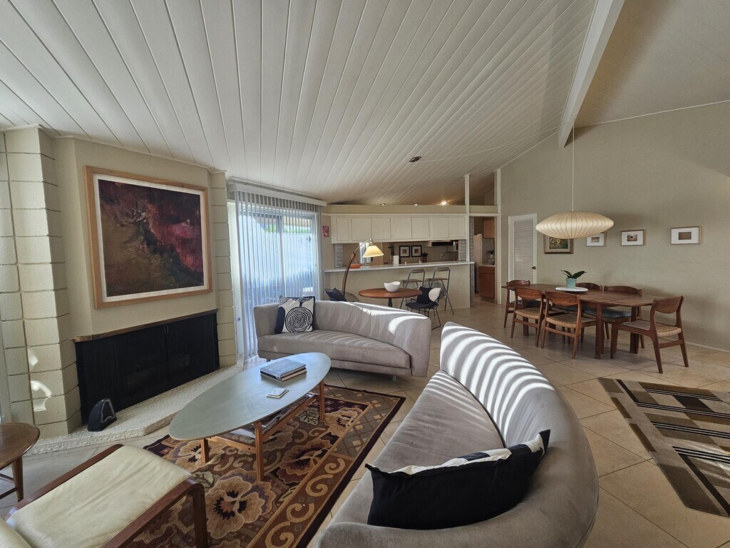 This unit is available May 1st,2026. 3 MONTH MINIMUM. This beautiful midcentury modern home is located in Rancho Mirage. It is turnkey furnished. This is a unique historic preservation property built by the son of Gummo Marx and designed by famous Midcentury architect Val Powelson. Quiet and peaceful complex with prime location. Two bedroom,two bath with high beamed tongue and grooved ceilings. Fireplace,walls of glass,large tiled showers,and tons of storage. Ceramic tile throughout,breakfast bar and storage room off the patio with laundry. There is a beautiful community pool and spa with amazing mountain views! Security Deposit: $2000,Cleaning Fee: $300. Trash,water,and internet are included. Tenant is responsible for utilities. MLS # 219135301