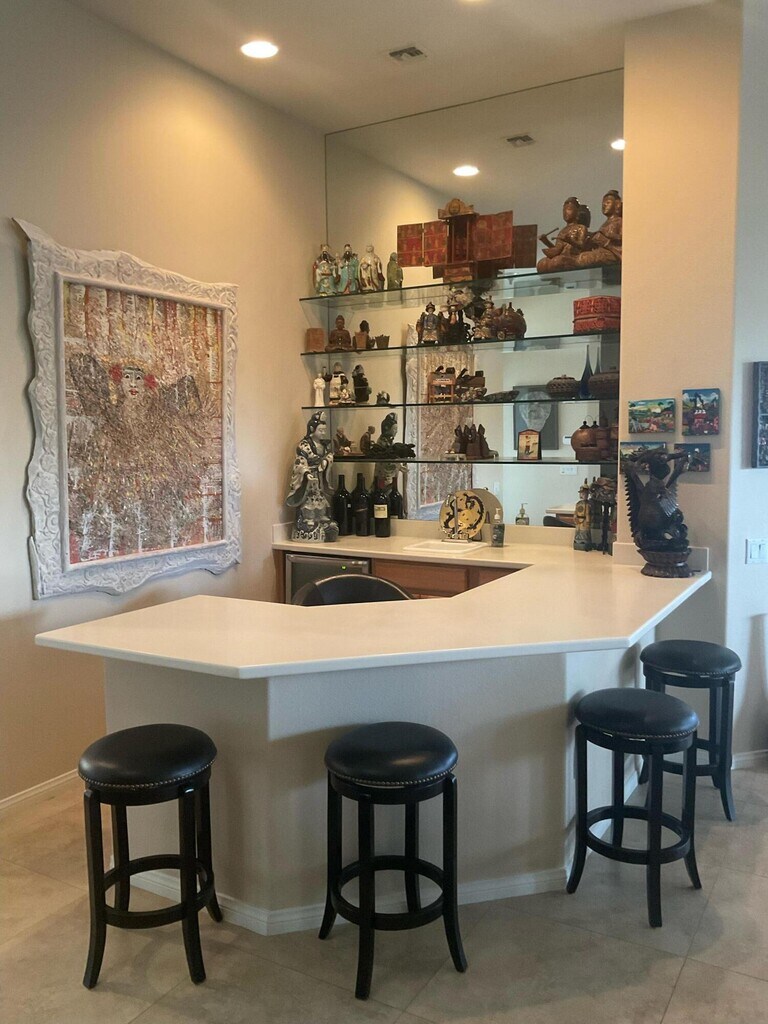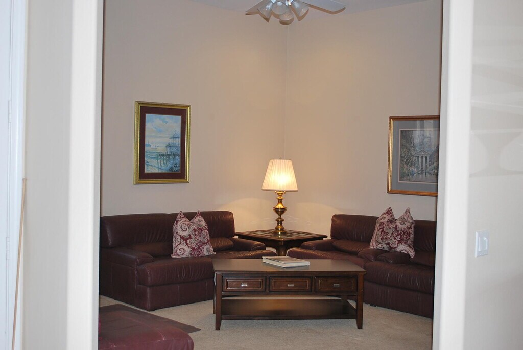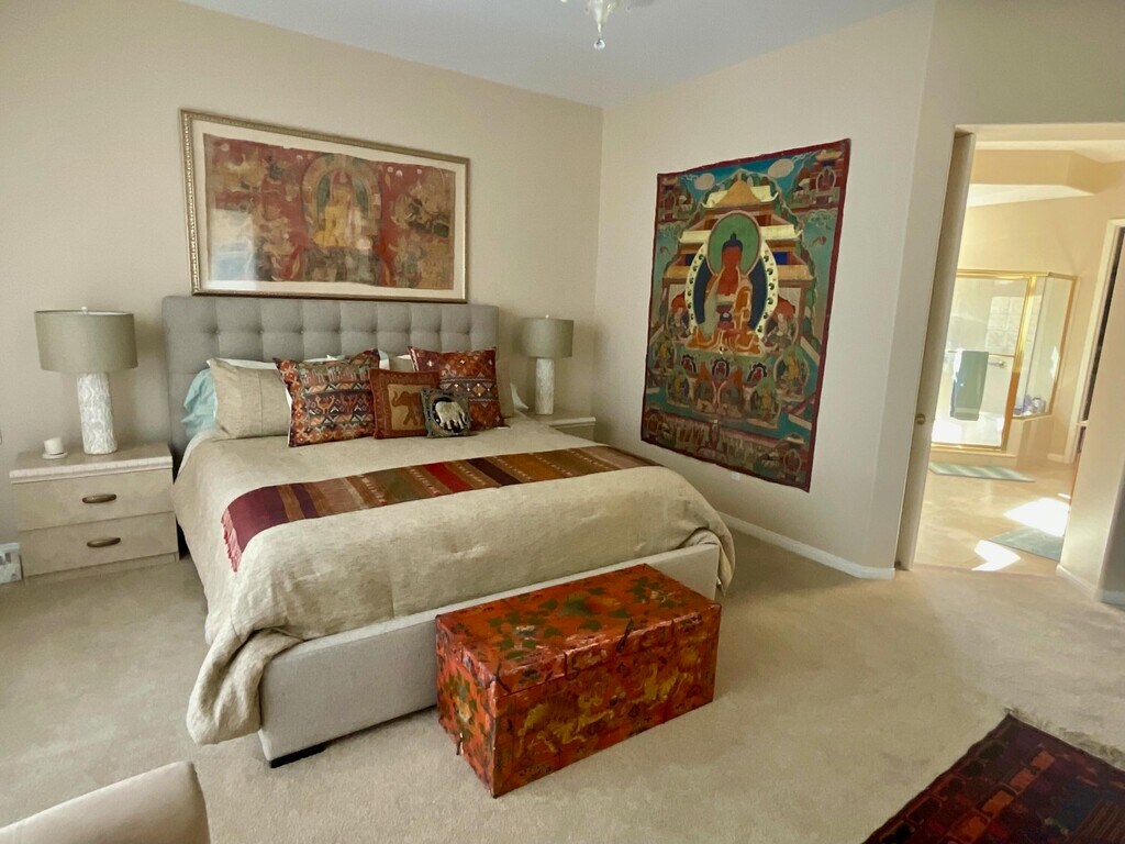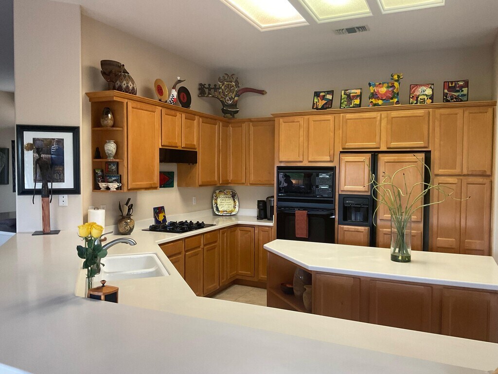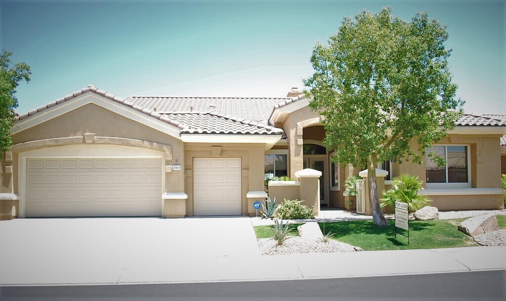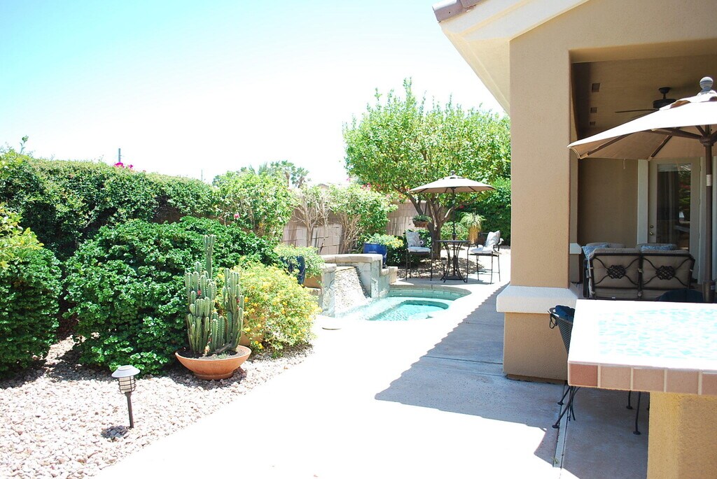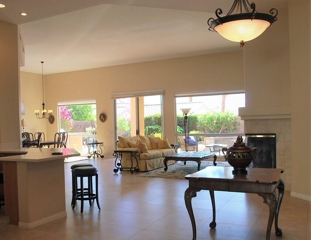You will feel instantly at home when you enter this spacious and inviting 2 bd/2.5 bath + den 2,561 sq. ft. St. Tropez floor plan home. With high ceilings,open floor plan,salt water waterfall spa,privacy galore,and 5 min. walk to golf course. This gracious fully furnished Sun City home offers the very best of the desert. resort living! The large entry way opens to the living room,corner fireplace and dining room with walls of windows showcasing the backyard. There is a large gourmet kitchen and separate bar area perfect for entertaining. The backyard features BBQ & salt water spa with waterfall. King master suite has a suite bath with dual sinks,soaking tub,large shower and walk-in closet. The queen bedroom has private bath,and the study may be used as a bedroom. Garage has built-in storage and separate place to park your golf cart. This highly sought after 55+ community has 2 golf courses,2 fitness centers,2 restaurants,5 community pools/spas,many amenities for perfect desert resort living. Cap on gas & electric of 200.00 per month..