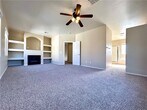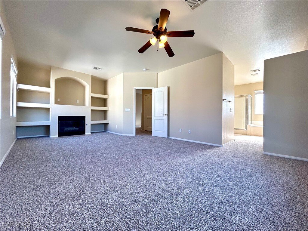 Southern Highlands Cutie! Located in a gated community, this charming two-story home offers 3 bedrooms and 2.5 baths. Enjoy the comfort of two gas fireplaces—one in the living room and another in the primary bedroom, which also features built-ins perfect for a TV or artwork. The interior has been freshly painted with new carpet upstairs and new blinds throughout. The kitchen boasts granite countertops, stainless steel appliances, and a breakfast bar. Step outside to a covered patio—ideal for relaxing or entertaining. Rent includes sewer, trash, and HVAC filters. Please note: per HOA rules, vehicles must be parked in the garage due to the common easement-style driveway.
