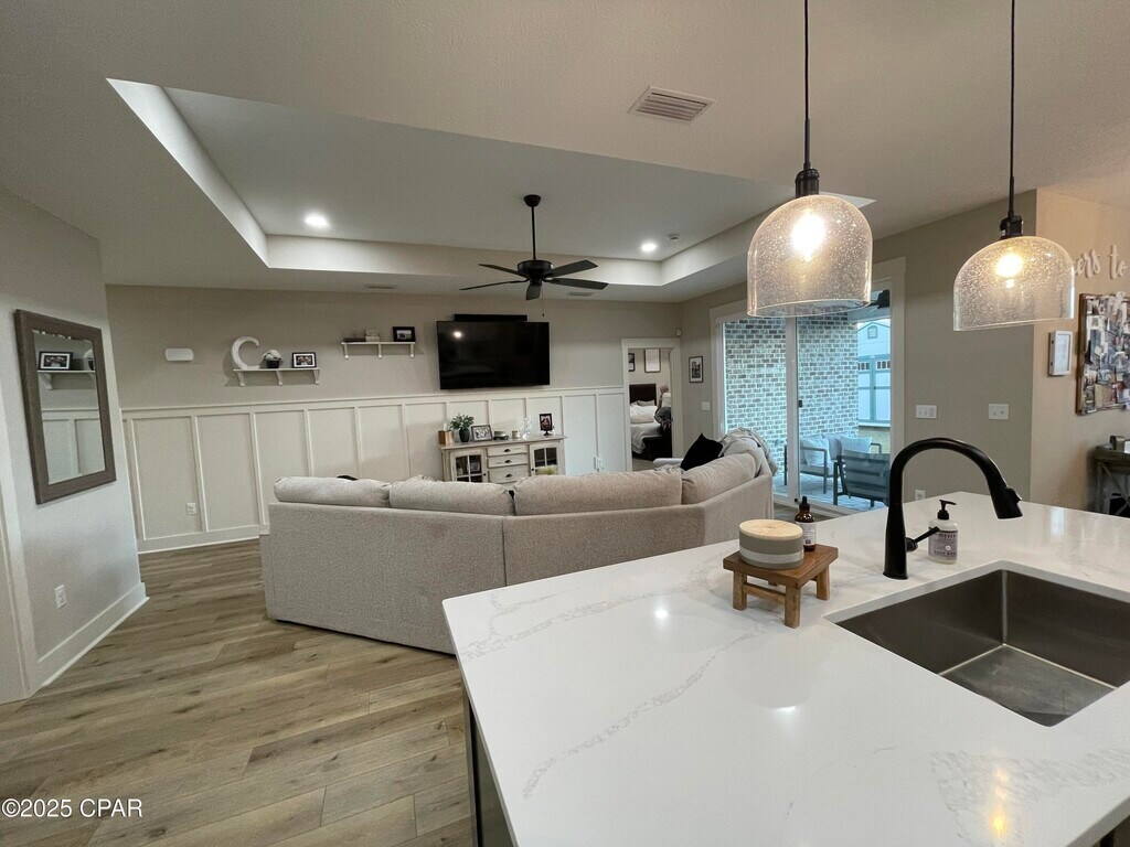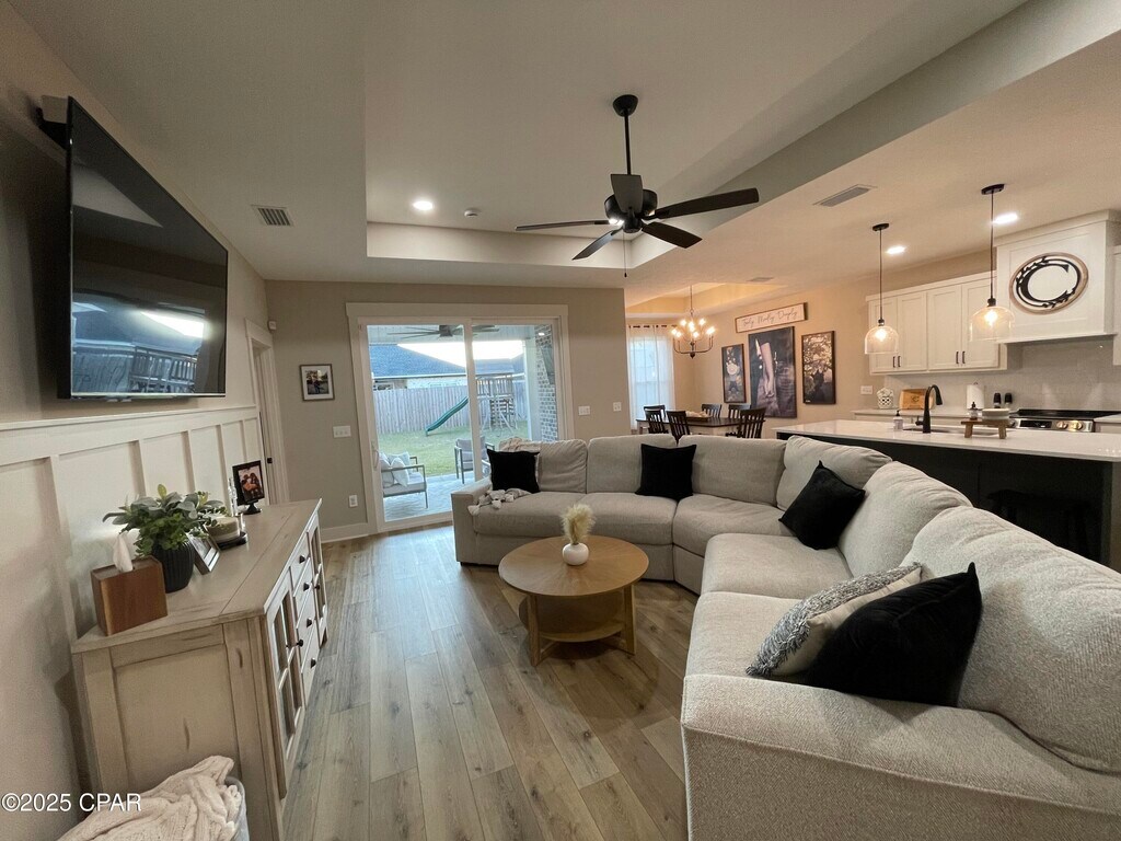 For Lease - Coastal 4 BR/2.5 BA home built by Camden Homes in 2024 (Cambridge plan). This split bedroom, open-concept design features a spacious kitchen with quartz countertops, large island, Energy Star stainless appliances, and custom pantry shelving for small appliances. The primary suite offers trey ceiling, double vanities, walk-in shower, and a custom closet. Enjoy a covered back patio with TV mount and dedicated grilling station. Washer and dryer are included in the mud room, which features a custom drop zone for easy storage. Beautifully appointed for comfortable coastal living. **Pets negotiable with $250 pet deposit, $50 pet fee, $50 monthly pet rent per pet.