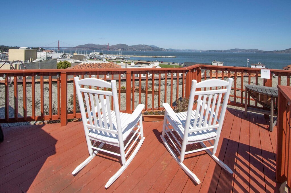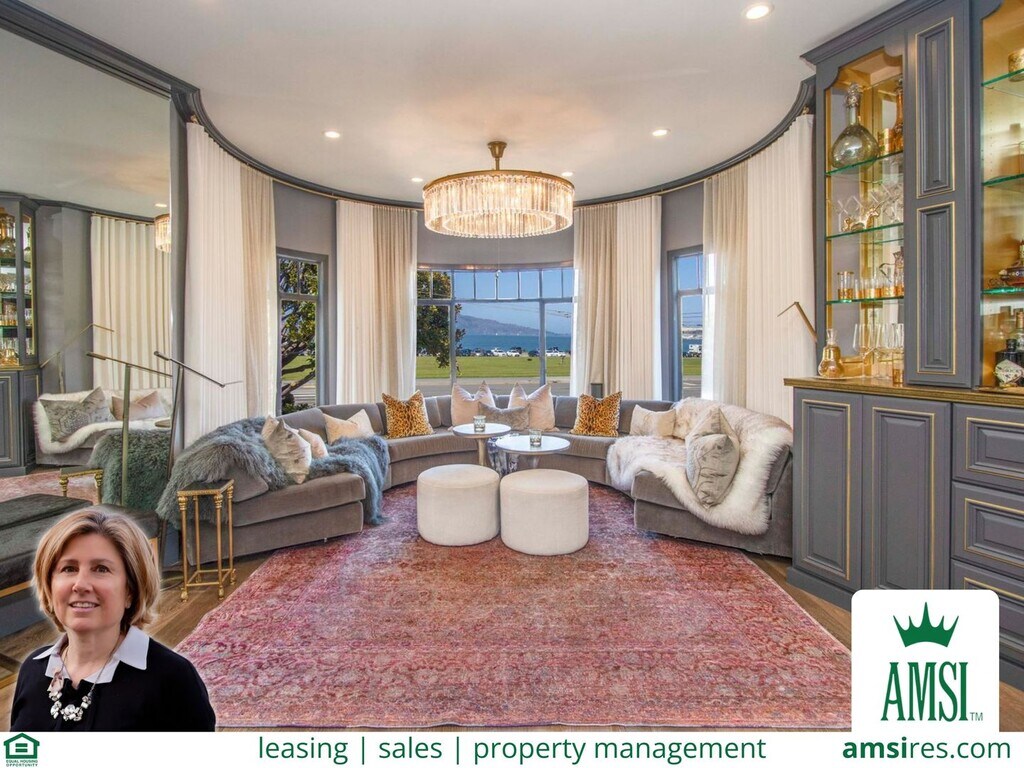 Marina Classic: Furnished 2 bedroom/2 bath condo with sweeping views of Alcatraz and SF bay. Stellar location..looking onto Marina Green right below your window. This condo is completely renovated with all high-end finishes and furnishings from RH. Hardwood floors throughout, radiant heating in all rooms, living room surrounded by windows, spacious kitchen with new stainless appliances, built in bar, large master bedroom with water views, custom bathrooms and built-in closets and washer/dryer. 1-car parking, extra storage, roof deck and a view that never gets old! Located at the end of Fillmore Street in a picturesque Mediterranean style building. No pets. Broker Associate, Selma Bushell, DRE#01510129