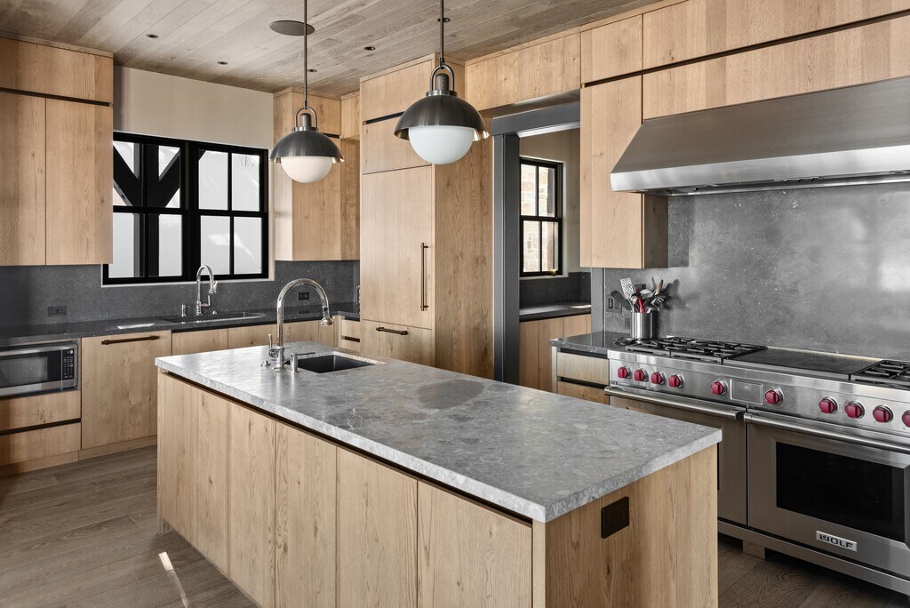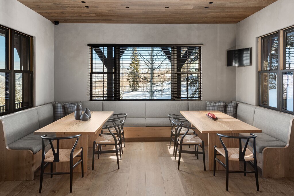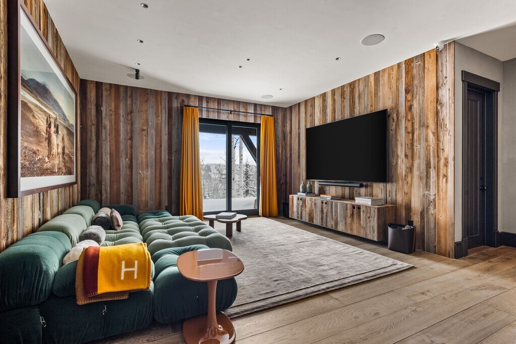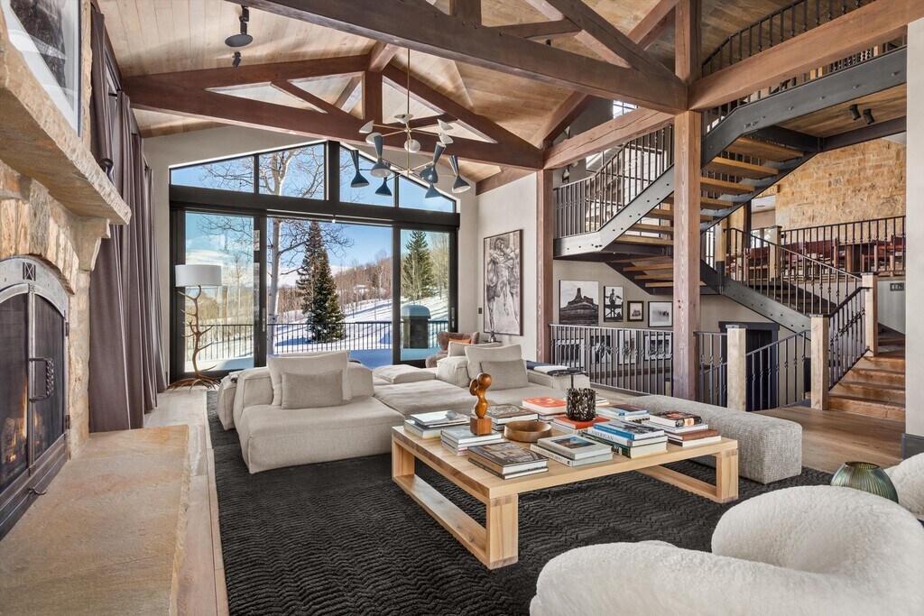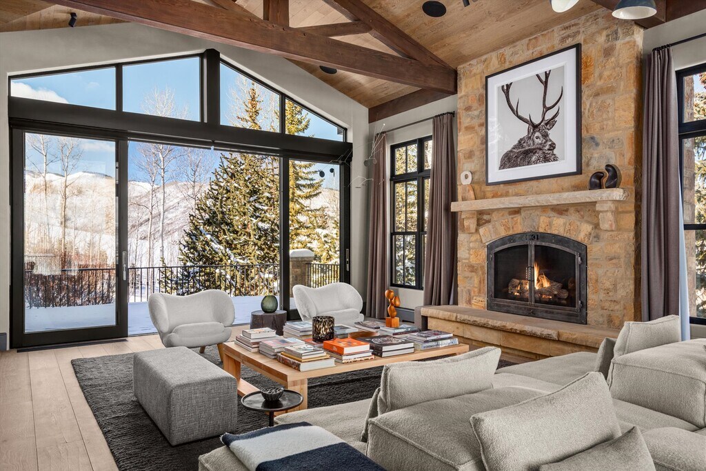 Ski-in to this sprawling modern chalet located in Snowmass Village's most exclusive enclave. A total remodel completed in 2023 considered every detail from the imported white oak floors to the mid-century modern fixtures, custom Italian furniture and handcrafted woodworking. The living room's two-story glass walls frame expansive mountain views from sunrise to sunset while maintaining a secluded setting on over two acres. To ski, simply walk along a 60-yard private trail from the property to the slopes and ski down. Importantly, the access places you on a groomed, beginner's run that leads directly to Snowmass Base Village, putting the entire resort easily at hand. With five bedroom suites including a bespoke bunk room, the home sleeps 12. Gathering is a pleasure in the chef's kitchen with a large banquet for informal dining or in the dining room with seating for ten. Enjoy evenings on the stone patio around the firepit, or on the terraced lawn in the summer. Experience the best of Aspen/Snowmass in any season from one of the finest and largest homes available. STR Permit #044636