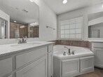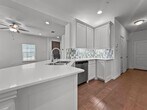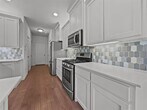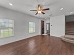 Welcome to this impeccably maintained 4 Bedroom, 3.1 Bathroom townhome with a Game Room & Private Backyard! Positioned on a corner homesite with a side yard leading to the front door, it offers both privacy and accessibility. The first floor features a half bath and a bedroom with a full bath, ideal for guests or as a private suite. Upstairs, the master bedroom impresses with a HUGE walk-in closet, plus a spa-like bath showcasing an oversized shower and garden tub. Entertain effortlessly in the spacious game room upstairs, perfect for hosting family and friends. Designer touches abound with modern window blinds, sleek white cabinets, luxurious quartz countertops in both kitchen and bathrooms, and wood flooring downstairs. Enjoy the benefit of FREE Lawncare and Maintenance courtesy of the HOA. The home is designed for efficiency with Energy Star-rated appliances, a tankless water heater, and a 16 SEER HVAC, ensuring low utility bills. REFRIGERATOR, WASHER & DRYER INCLUDED! PET FRIENDLY!