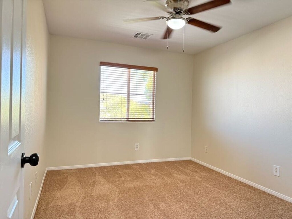 Welcome to your ideal home in a centrally located community, just minutes from the freeway, top restaurants, and trendy shops! This stunning 4-bedroom, 3-bathroom residence features a versatile loft upstairs and a spacious downstairs den, perfect for a home office or cozy retreat. Gleaming wood floors flow through the main level, leading to a kitchen with a pantry and ample countertop space for all your culinary creations. Ceiling fans throughout ensure year-round comfort, while the freshly painted interior and new carpet add a touch of elegance. Unwind or entertain on the expansive covered patio, surrounded by low-maintenance landscaping that maximizes your leisure time. With a 2-car garage, this home blends style, comfort, and convenience in an unbeatable location. Don’t miss out—schedule your tour today!