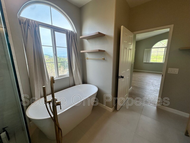 This elegant 4-bedroom, 3-bathroom designer townhome is perched at the top of the “Westlake Vista” community, offering mountainous and hillside views. The multi-level home features over 2400 square feet of living space and it is on a unique corner location adjacent open space. It boasts pride of ownership throughout, and it is brimming with stunning upgrades. The recently remodeled and re-imagined chef’s kitchen was designed with meticulous attention to detail, boasting Calacatta Vagli Honed marble countertops and backsplash, Wolf range with iconic red knobs, Fisher Paykel fridge, custom cabinetry with loads of storage, farmhouse sink, an oversized island, undercounter lighting, custom light fixtures and more! The family room is adjacent to the kitchen on the first level, and it has high ceilings, shutters, a decorative fireplace with Calacatta Vagli Honed marble mantle, and a patio door opening to the lovely wrap-around patio. The primary bedroom has views of the hillside and mountains, a private balcony, walk-in closet, and an attached private bathroom. The primary bathroom was recently remodeled with a new shower stall, a free-standing soaking tub, and dual vanity. There is also a loft area on the same level as the primary bedroom. There are two bedrooms and a jack-and-jill bathroom on the top level. Each bedroom on this level has mirrored closet doors and access to its own private vanity area. The laundry closet is on the top level, and the Maytag washer/ dryer set is provided. There are an additional bedroom and full bathroom on the entry level. There is a 2-car garage with direct access to the house on the entry level. There is an additional fridge in the garage provided for residents’ use. The lovely patio has artificial turf and a concrete patio area. The patio has views of open space and a mature Oak Tree. The “Westlake Vista” neighborhood has a community pool and spa, and the HOA maintains the common grounds. This home’s prime location is within minutes of The Westlake Promenade, hiking and biking trails, shopping on Thousand Oaks Boulevard, freeway access, and schools. It is in the regarded Conejo Valley Unified School District. This is a non-smoking property. Submit for a pet: no large dogs or aggressive breeds. Both fireplaces are for decoration only and are not to be used. HIGHLIGHTS: • 2400 square feet, 4 bedrooms, 3 bathrooms • Unique corner unit adjacent to open space • Mountainous views • Remodeled chef’s kitchen • Pride of ownership loaded with upgrades • Washer/ dryer & additional fridge in garage provided • Wrap-around oversized patio with artificial turf