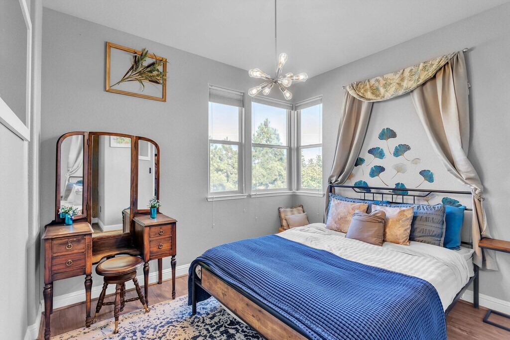 The advertised rate of $3,949/month is the lowest available price, based on a 30 day(s) stay with a move-in date of August 30, 2026. Rates vary depending on the duration of stay, season, and other parameters. For exact pricing and additional pricing components, please visit our website and enter your desired move-in and move-out dates. The rate is applicable when billed upfront; it can be higher if billed in multiple payments. Reimagine your holiday escape and feel at home in this 3-bedroom modern villa, nestled in Reno's bustling heart. This comfortable, vibrant sanctuary accommodates up to 6 guests. Crowned with stunning mountain views and a striking double-sided fireplace, this 3-bedroom villa is a taste of true Nevada elegance. Each of the three bedrooms provides a serene retreat, lavishly decorated and exuding warmth and serenity, they’re equipped with plush bedding, ceiling fans, and extra pillows to ensure your maximum comfort. The elegant master suite, located upstairs, offers a roomy sanctuary where you can marvel at the breathtaking views of Reno’s skyline from the comfort of your bed. The practical, modern kitchen is complete with a coffee maker, a refrigerator, and an oven. The living area's sophisticated accents and the tasteful fireplace instantly set a cozy and welcoming atmosphere. Pets are welcome with a fee of $100 per stay. Nestled on a quiet single dead-end street with just five newer homes, this villa offers a peaceful and private retreat in the Northwest Terrace neighborhood of Reno. Enjoy the serene surroundings, minimal traffic, and a true sense of safety and community, all while being just a short drive from downtown Reno’s dining, entertainment, and outdoor adventures. You’ll find everything you need just steps away, including Save Mart, Walgreens, Bank of America, 7-Eleven, a UPS Store, and a variety of local restaurants. The vibrant Midtown and Downtown Reno areas are only a 4-mile drive from the villa, making it easy to explore dining, nightlife, and entertainment. There is a doorbell camera for your and our safety. During summer, the downstairs thermostat cannot be turned on. Central AC is upstairs thermostat only. Downstairs there is a mobile AC unit for your comfort. Cleaning fees for animal waste is $200. Excessive hair fee is $150. Damage due to pets will incur additional fees. Includes a dedicated workspace. [SI]