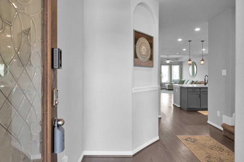 DISCOVER this beautiful 2-story BRICK and STONE home perfectly situated on a WATERFRONT LOT. Enjoy lovely views of the backyard and lake from the open-concept KITCHEN,DINING and LIVING areas. The main floor features 3 BEDROOMS and 2 BATHS including a large PRIMARY SUITE. The PRIMARY BATH boasts double sinks,a soaking tub,shower,and walk-in closets. A tray ceiling and bay window enhance this suite's elegance. Wood floors flow throughout the main living areas,with cozy carpet in the secondary BEDROOMS. Upstairs,find a private haven with 1 BEDROOM,1 FULL BATH,a large GAME ROOM,and versatile FLEX ROOM,offering endless possibilities. An in-house LAUNDRY ROOM adds to the home's convenience. Step outside to a large covered patio,ideal for entertaining or simply unwinding. Iron-fenced backyard provides privacy and security,with a convenient gate leading to your very own fishing dock,complete with seating. 2 CAR-GARAGE with built-in EV charger completes this exceptional property. MLS# 88179213