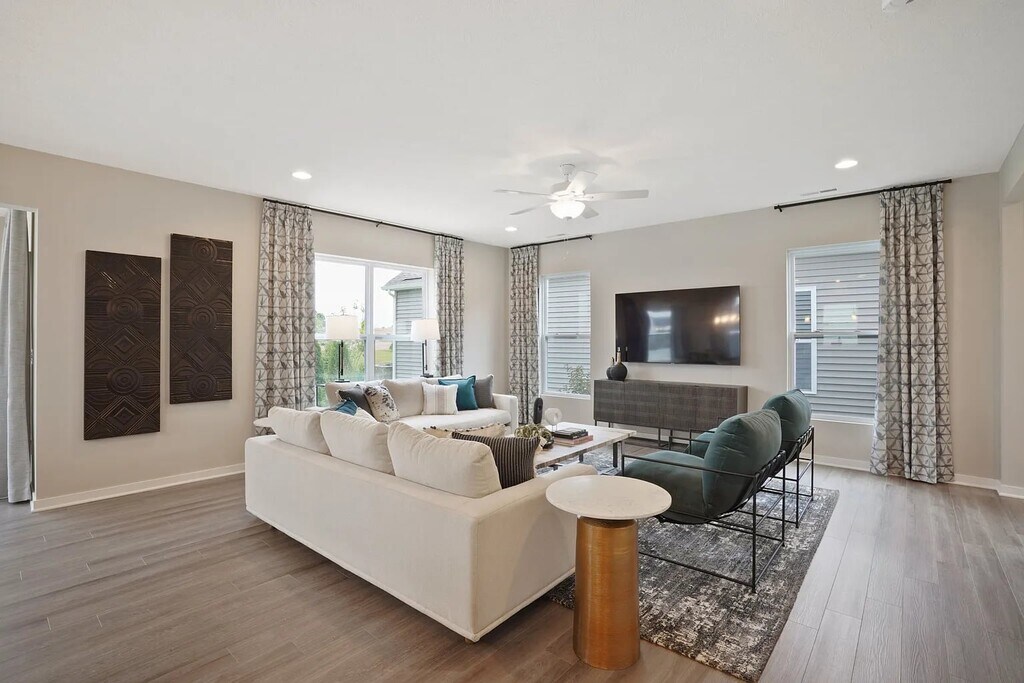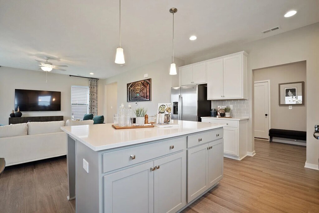 This brand-new, never-before-lived-in property, previously model home offers modern comfort and style. Featuring 3 bedrooms and 2.5 baths, this home boasts a spacious and open layout, perfect for both relaxing and entertaining. Enjoy the convenience of a second-floor laundry. The property including quartz countertops, stainless steel appliances and LVP flooring in the open layout kitchen that connects to the morning room. A dedicated loft area is perfect for a home office, or an entertainment room provides additional space for leisure. The master suite is a true retreat with a large walk-in closet. The master bedroom features a tray ceiling for an added touch of elegance. A lovely patio in the backyard offers a pond view. Furniture is not included. Sorry, no pets allowed. Renters responsible for all utilities (electric, gas, trash, water), air filter replacements, and landscaping. $50 application fee per adult (18+).