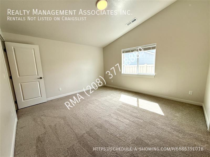 This pristine 3-bedroom, 2-bathroom home in the desirable Trident Ridge subdivision offers a peaceful, country-like setting with a charming view of Highland cows right from your front window. Inside, you’ll find luxury vinyl plank flooring throughout the main living areas and an open-concept layout featuring a beautifully designed kitchen with a large center island, quartz countertops, stainless steel appliances, a pantry, and ample storage. The living room boasts vaulted ceilings, abundant natural light, and a welcoming dining space, while the split-bedroom floor plan provides added privacy. The spacious primary suite includes vaulted ceilings, a private en-suite bath with dual sinks, and generous his-and-her walk-in closets, while the additional two bedrooms are well-sized with great closet space and easy access to a guest bathroom with a shower/tub combo. A dedicated laundry room with washer and dryer is included for your convenience, and the backyard offers low-maintenance landscaping along with a relaxing patio area. Enjoy the benefits of nearby community amenities including walking paths, playgrounds, and common areas, all while being just minutes from the elementary school, 5 minutes to River Birch Golf Course, under 10 minutes to downtown Star, and within 15 minutes of major shopping destinations like Costco, Fred Meyer, and Walmart. With quick access to Highway 16, this home perfectly blends comfort, convenience, and scenic surroundings. 12 month lease & Property Liability Insurance Required at Move-In. Tenant pays all utilities. An $80.00 utility reimbursement is paid in addition to rent for the sewer & water . No Pet Property. Section 8/Housing Vouchers will not be considered for this rental This property is located with-in the Trident Ridge Subdivision and subject to the residential rules and regulations of the HOA. For questions about residential rules or questions about the HOA CC&Rs please reach out to the HOA Management: Valley Property Management