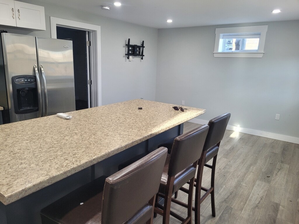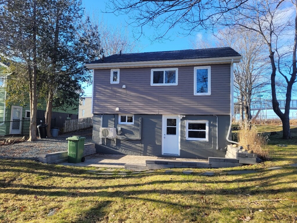 Cozy one bedroom basement apartment in Northend Dartmouth on a quiet street. Access is around the back and has a private stone patio for summer BBQ's and shared use of the backyard. . This unit has been renovated recently and features laminate floors throughout as well as a heat pump for cooling and heating. Open concept kitchen and living space. Breakfast bar features 3 stools and has a fridge, stove and dishwasher. Washer and dryer also included. Bathroom has a large shower and a storage space. A cat will be considered. Only for one person. Non smoker. A parking spot is available. On a bus route. Within walking distance to shopping. Lawn care is also included. Terms: One year or longer term Available: March 1st Rent: $1400/month plus electricity and heat. Heat pump installed Water is included. Close to downtown Dartmouth!