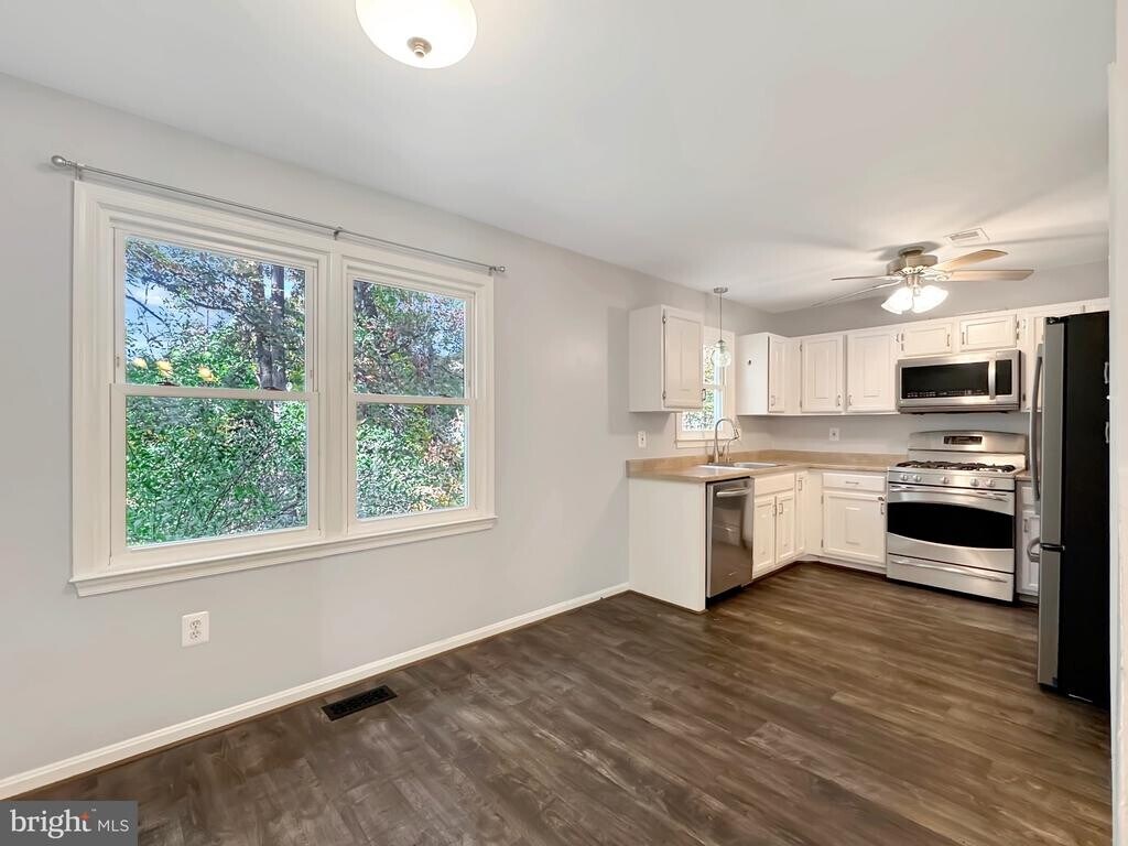 Discover almost 2,000 square feet of comfort and convenience in this charming double-master suite townhome, ideally situated close to the vibrant attractions of Old Town Alexandria. This home features a beautifully landscaped, fenced-in backyard with a quaint patio backing to serene trees, perfect for relaxation and outdoor entertaining. Inside, enjoy the fresh new paint job throughout and the elegance of hardwood floors across all three levels. The spacious kitchen boasts updated stainless steel appliances, white cabinetry, granite countertops, and a gas stove, making it a chef's delight. Located just minutes from the King Street Metro, DCA, Old Town, Amazon HQ2, and the Pentagon, with easy access to all major highways, this townhome offers both a tranquil retreat and a gateway to all the action.