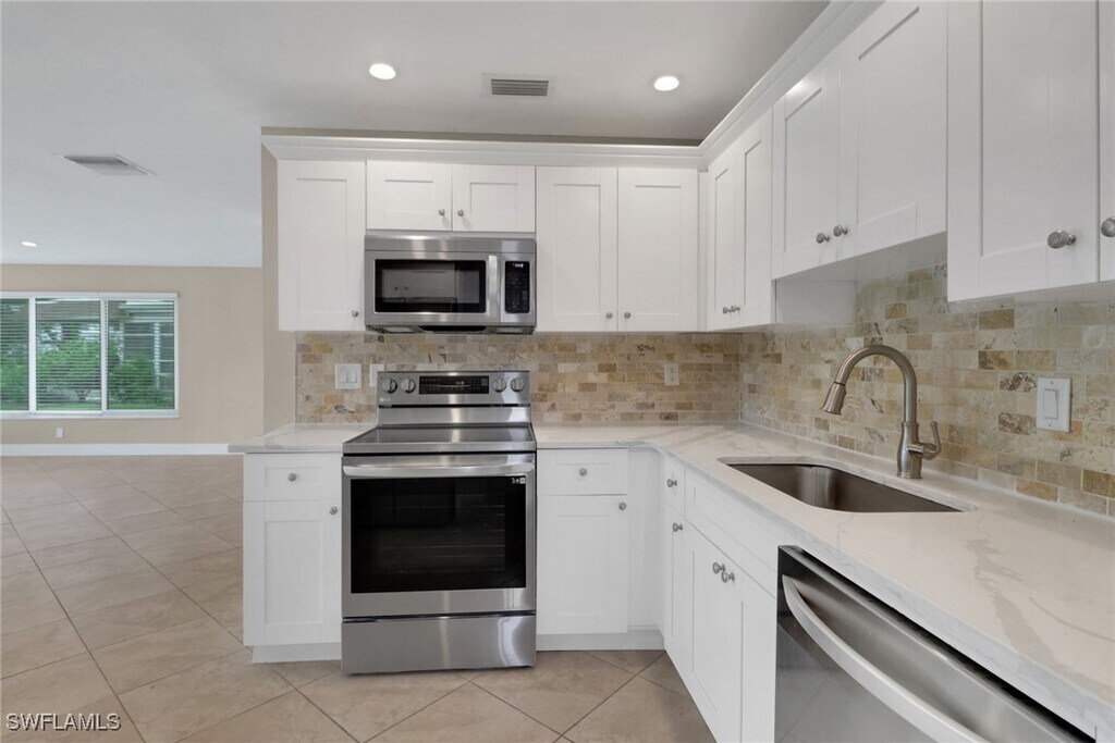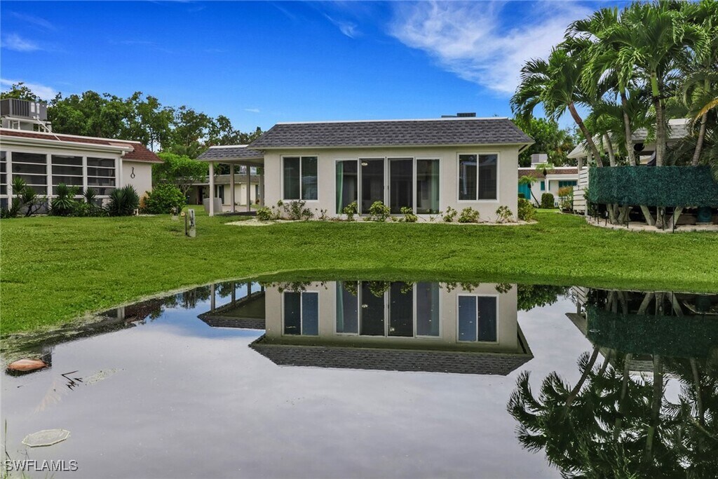 AMAZING LOCATION! Renovated 2BR/2BA Detached Villa with carport. Experience the perfect blend of style,space,and location in this updated 2-bedroom,2-bathroom detached villa,nestled on a tranquil lake. This annual rental offers the privacy of a single-family home with the ease of simple living,right in the heart of Naples,approximately 1 mile to 5th Ave,or Celebration Park. Step inside to discover a thoughtfully redesigned interior featuring impact windows & doors,white shaker cabinetry,granite and quartz countertops,stainless steel appliances,and designer fixtures throughout. Every detail has been elevated from tankless hot water,floor to ceiling tile work,and full-sized in-unit washer and dryer,to modern recessed lighting,ceiling fans,and premium door hardware. Additional enhancements include new interior and exterior doors,insulation,baseboards,and a freshly sealed driveway. Unwind while taking in serene water view or venture out to explore the soon to be completed Gateway Triangle,a vibrant,upscale extension of Naples’ famed 5th Avenue,featuring boutique retail,fine dining,and a luxury hotel. All this,just 5 minutes from world-renowned white sand beaches,the Gulf of Mexico,and those legendary Naples sunsets. Immediate availability.