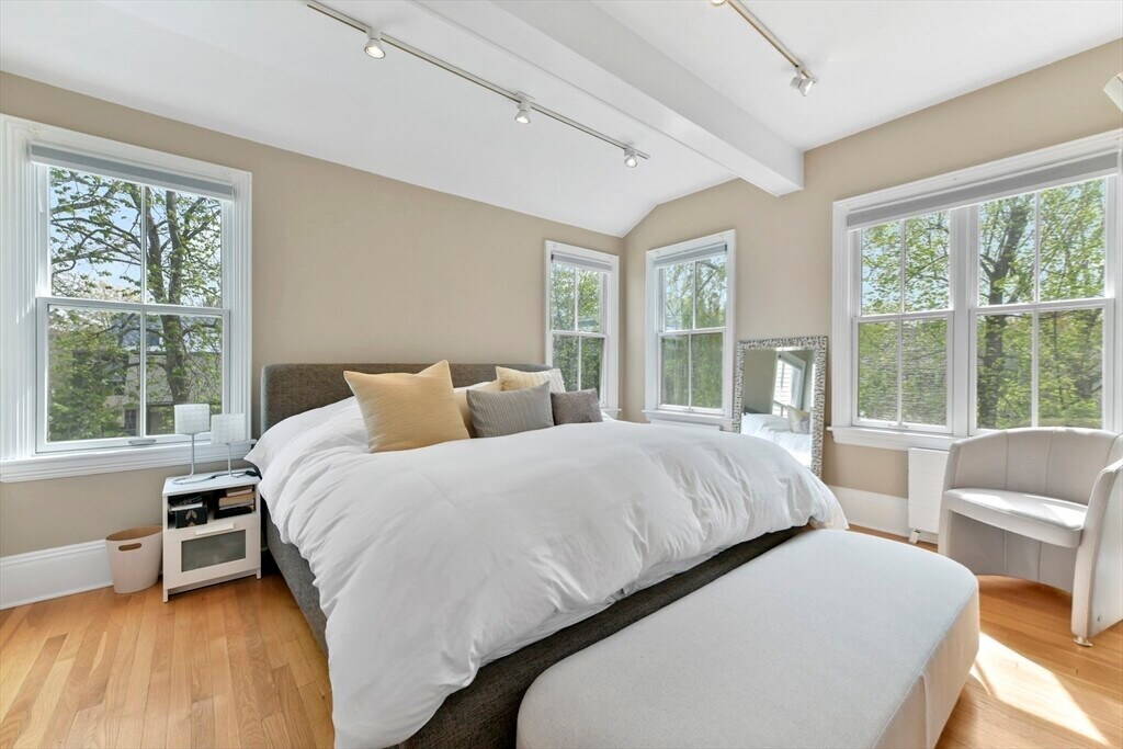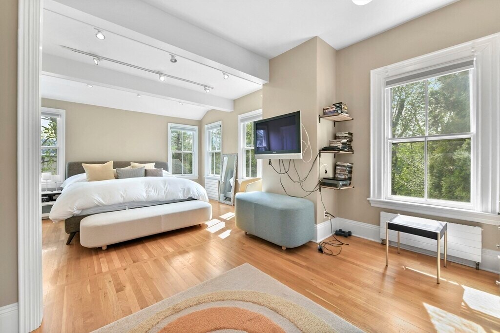 BRATTLE AREA. Stunning,renovated Victorian Mansard with classic features and modern updates. Chef's kitchen with sunny family eating area. Spacious and light living/dining area. Private deck and huge landscaped yard. Open-plan master suite,central air,exotic hardwood floors and two fireplaces. Finished basement/playroom and parking for many cars. Walk to Harvard,T and shops. * Newly finished basement offers 1 guest room with private bathroom (in addition to 3 bedrooms and 2.5 bathrooms on upper levels). Pets considered. MLS# 73439319
