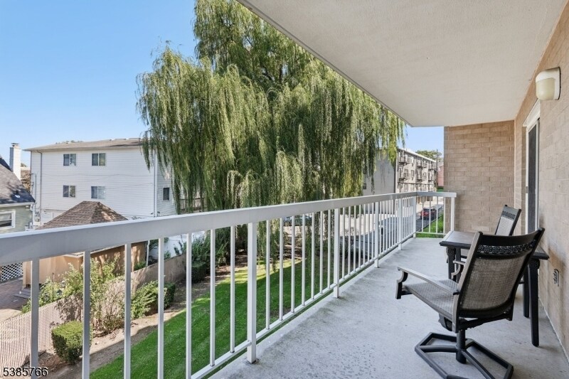 This charming and sun-filled 2-bedroom, 2-bathroom apartment offers the perfect blend of comfort, convenience, and style. The primary suite features a private full bathroom and double closets. Sliding glass doors opens directly onto your own balcony from both living room and master bedroom perfect for morning coffee or evening unwinding. The second bedroom is generously sized, ideal for guests, a home office, or additional family members. sEnjoy central air conditioning throughout, in-unit laundry, and the added bonus of indoor garage parking. Steps from the NYC bus stop, commuting to the city is a breeze while you enjoy the quiet comfort of home.