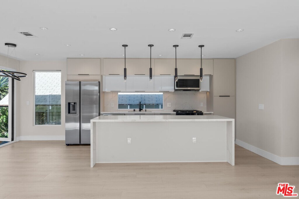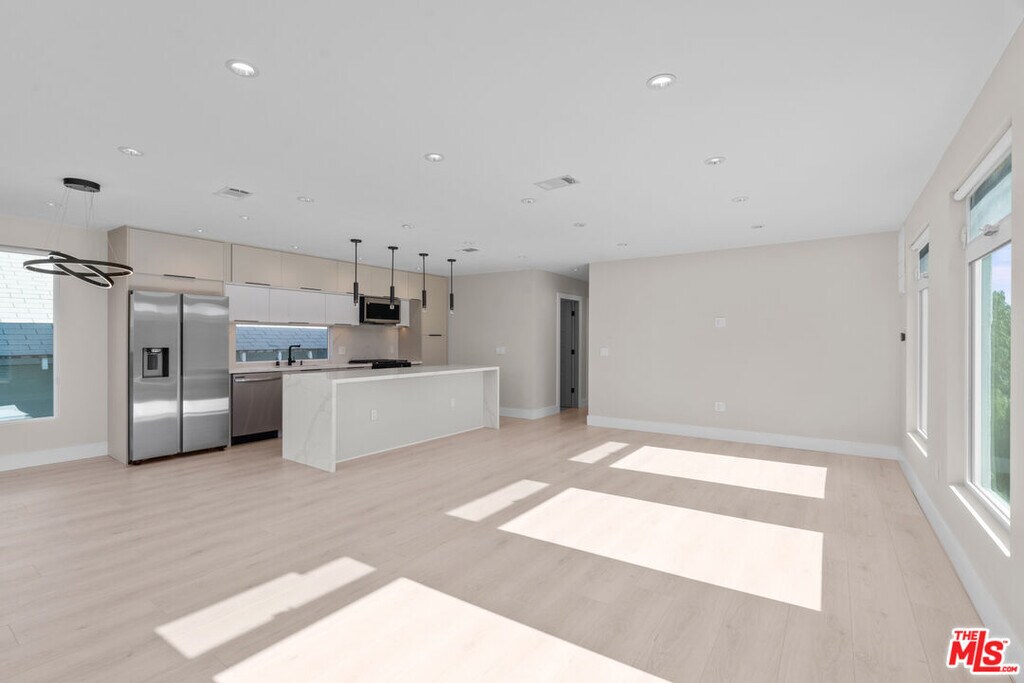 Experience luxury coastal living in this newly renovated 3-bed, 2-bath, top floor unit on the quiet Paloma Ave walk street - just seconds from Venice Beach. This architecturally crafted home combines high-end design, functionality, and smart-home technology. Enjoy open-concept living with floor-to-ceiling windows and a 14-ft folding glass wall that connects the living space to a private balcony - perfect for indoor/outdoor dining while enjoying the ocean breeze. The chef's kitchen features Calcutta waterfall countertops, European cabinetry, stainless Samsung appliances, and a wine fridge. The primary suite includes dual closets, a Juliet balcony, and a spa-inspired bath with Italian marble, rainfall shower, and built in Alexa-operated speaker system. Unwind on the 400 sq. ft. shared rooftop deck with lounge seating, fire pit, and BBQ. Smart-home features include voice/app-controlled lighting, NEST thermostat for central heat and AC, Ring video doorbell, and keypad entry. Tucked on a quiet walk street just steps from Abbot Kinney, Rose Ave, and the Venice Boardwalk, this penthouse delivers privacy, sophistication, and pure California beach living. The unit also comes with two tandem parking spots - one in the garage and one parked behind. MLS# 25605583
