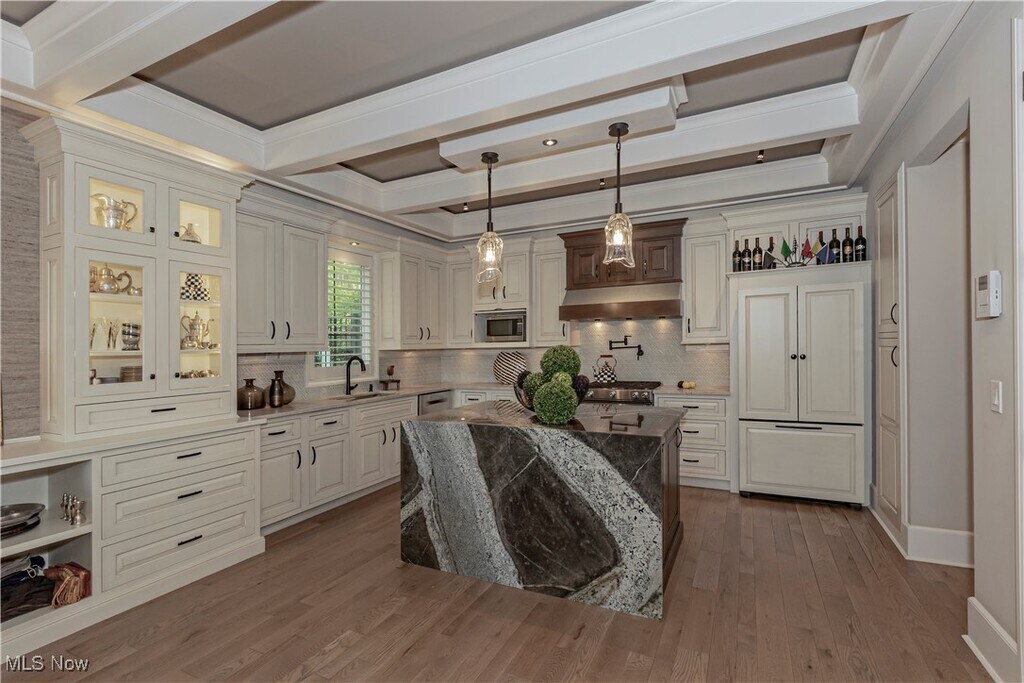 An extraordinary opportunity to reside in one of the most coveted brownstone townhomes in the heart of Chagrin Falls Village. This fully furnished rental is available for immediate occupancy. A gracious entry foyer welcomes you,offering first-floor laundry and exceptional storage. Ascend via private elevator or staircase to the main living level,where an expansive open-concept design creates a sophisticated setting for both everyday living and grand entertaining. The chef's kitchen seamlessly connects to the dining area and elegant living room,highlighted by a gas fireplace and custom built-ins,allowing for effortless flow and an elevated entertaining experience. The third level features the luxurious primary suite,featuring a generous walk-in closet and a spa-inspired en suite bath with dual vanities,an oversized walk-in shower,and a jetted soaking tub. Also on this level is a second bedroom with a private bath as well as an additional flex room,ideal for a private office or fitness space. The fourth floor offers an exceptional retreat,complete with a third bedroom,full bath,and an expansive family or media room. Sliding doors open to a spectacular 21x21 slate terrace,fully appointed with a wet bar,television,and gas fireplace-providing breathtaking,unobstructed views overlooking the Village of Chagrin Falls.