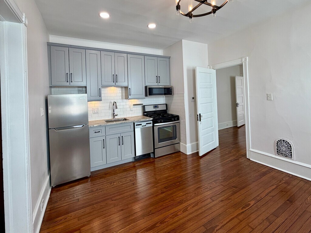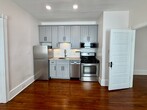 38 Walnut Street, Haddonfield, NJ 08033 Beautiful Victorian Style apartment with high ceilings, pocket doors, one bedroom, one bath, tastefully renovated. Living room, large eat in kitchen recently remodeled with stainless steel appliances, including a dishwasher, gas range, refrigerator. Laundry room with washer and dryer. Enjoy the private rear deck and shared front porch. Parking requires a permit from Haddonfield. Landlord maintains the lawn, tenant pays $50.00 per month for water and sewer. Walk to shops, restaurants, and the Patco, train station.