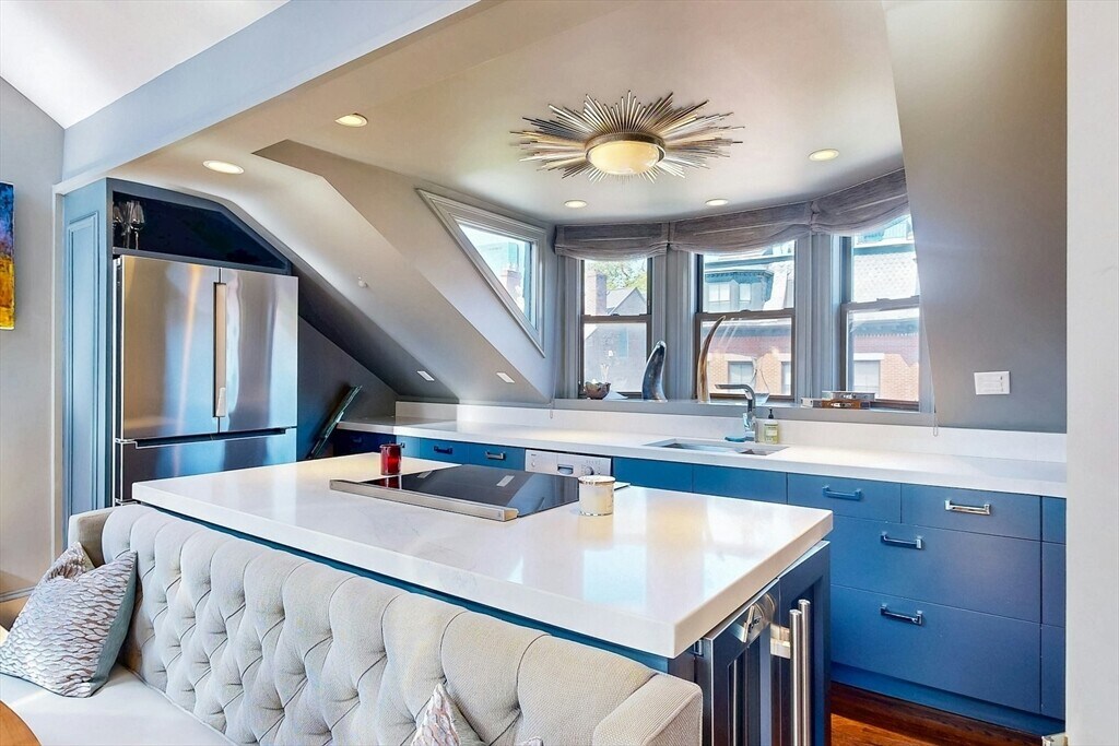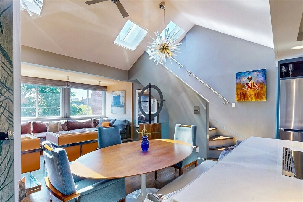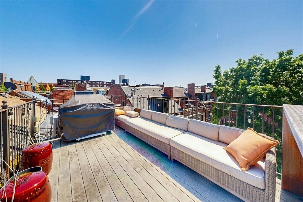 WOW Fully Furnished. Avail 6mths plus. Gorgeous renovated 2 bedroom and 1.5 bath Penthouse duplex - featuring a sun splashed open living/dining room with dramatic vaulted ceilings and a wall of windows with city and lush green tree top views. Entertain in the delightful cooks kitchen with quartz counters,custom cabinets and excellent storage. Accents include skylights,bay window with Prudential views,all modern finishes and designer lighting. Experience comfort in excellent size bedrooms,custom closets,and a bonus walk in closet. Enjoy the amazing city views from your 175 sq. ft. private roof deck. This beautiful urban oasis for community gardeners is also a top location steps to everything- including shopping,cafe's,Sowa art market and with a walk Score of 94,this location is a Walker’s Paradise so daily errands are a breeze. This neighborhood home to nearby parks & world-class public transportation MLS# 73463213