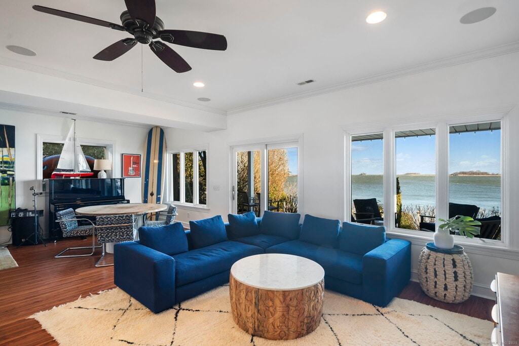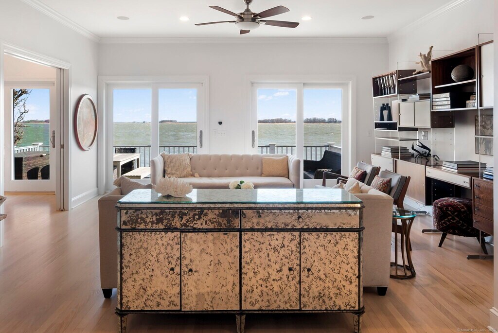 Call for Availability - Live the Dream on Bell Island. Direct waterfront with expansive water views from every floor. Wake up to the sound of waves, sip your morning coffee on the expansive deck, toast to golden sunsets from the stone patio, and launch your SUP or kayak into the water from your own steps. Designed for effortless living and entertaining, this four-bedroom Coastal Colonial boasts high ceilings, walls of windows, a flexible floor plan, a large finished third-floor bonus space, a walk-out lower-level family room with a built-in bar and a custom wine cellar. As a resident of the Bell Island Association, you'll enjoy access to two private beaches and three beautifully maintained parks-perfect for morning strolls, paddleboarding, or simply soaking in the coastal lifestyle. Flexible terms. MLS# 24108904