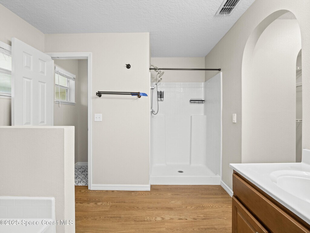 Welcome to this inviting 3-bedroom,2-bath home in the heart of Palm Bay. With vaulted ceilings and an open,airy layout,this residence offers comfort,style,and room to breathe. The kitchen features solid surface countertops and well-maintained appliances,perfect for everyday living or entertaining. The spacious primary suite includes a walk-in closet,dual vanities,a spa-style shower,and a relaxing garden tub. Outside,enjoy a fully fenced backyard with a covered patioideal for peaceful evenings or weekend gatherings. Additional features include lawn and pest control included,a two-car garage,washer and dryer,and a location just minutes from shopping,dining,and I-95. Rental requirements: minimum 650 credit score,income at least three times the monthly rent,and no criminal background,evictions,foreclosures,or bankruptcies. Large pets may be considered with a pet fee. One-year lease term preferred. This lovely home is ready to welcome you