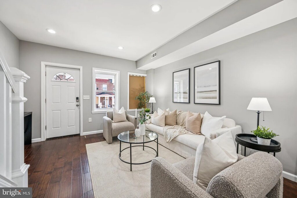CREATIVE FINANCING LEASE/PURCHASE CONSIDERED. 14 FT WIDE NEWLY RENOVATED END OF GROUP HOME NOW AVAILABLE WITH 3 ABOVE GRADE BEDROOMS. GLISTENING HARDWOODS ON FIRST FLOOR, CARPET IN BEDROOMS, TILE IN BATHS. ENJOY CUSTOM CABINETRY, UPGRADED TRIM AND PAINT PACKAGE, GRANITE COUNTERTOPS, SS APPLIANCE PACKAGE IN CHEF'S KITCHEN WITH OVERSIZED ISLAND. NEW RANGE/STOVE, REFRIGERATOR, MICROWAVE, WASHING MACHINE, GARBAGE DISPOSAL. 5G INTERNET PROVIDED. MAIN LEVEL HALF BATH. LOADS OF NATURAL LIGHT. TONS OF STORAGE. REAR FENCED YARD. LARGE FRONT PORCH. CLOSE PROXIMITY TO JOHN HOPKINS AND MORGAN STATE RETAIL SHOPPING, LOCAL DINING, AND ALL MAJOR HIGHWAYS.
