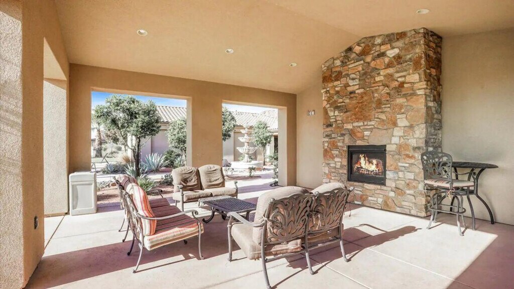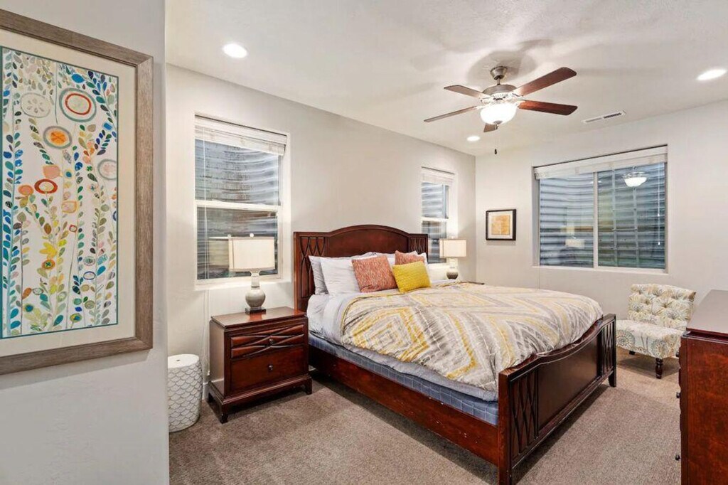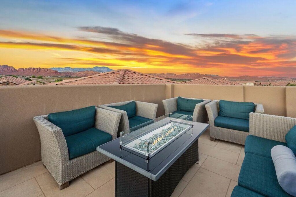Discover the charm of Santa Clara, UT, at this welcoming 4-bedroom, 3.5-bath house. Start your morning with coffee on the rooftop deck, complete with red rock mountain views, then head to St. George's historic downtown to visit unique area attractions. Feeling adventurous? Make the day trip to Zion National Park to experience one-of-a-kind landscapes you won't find anywhere else. This family-friendly vacation rental is the ideal home base for nature lovers and sightseers alike. This 3-story home requires stairs to access. Thoughtfully designed with multiple living areas, this house offers Smart TVs with cable, a group-friendly dining table, and a cozy fireplace. The fully equipped kitchen includes cooking basics, a coffee maker, dishwasher, stove, oven, refrigerator, microwave, blender, Crockpot, garbage disposal, ice maker, kettle, spices, toaster, dishware, and flatware. Enjoy the outdoor dining area, private rooftop deck with a fire pit, and gas grill. Parking is available with a garage for 2 vehicles and a driveway for 2 vehicles. RV and trailer parking is allowed in designated lots. Located just 7 miles from Historic Downtown St. George, this property offers easy access to charming boutiques, local eateries, and historic landmarks. Explore the Santa Clara Historical Museum, only 1 mile away, or venture 4 miles to Snow Canyon State Park for stunning red rock formations and hiking opportunities. The Tuacahn Center for the Arts is just 8 miles away, offering world-class performances in a breathtaking outdoor amphitheater. Guests must be at least 25 years old to book. Quiet hours are observed from 11:00 PM to 7:00 AM. No smoking, pets, events, parties, or large gatherings are allowed. Additional fees and taxes may apply, and a photo ID may be required upon check-in.