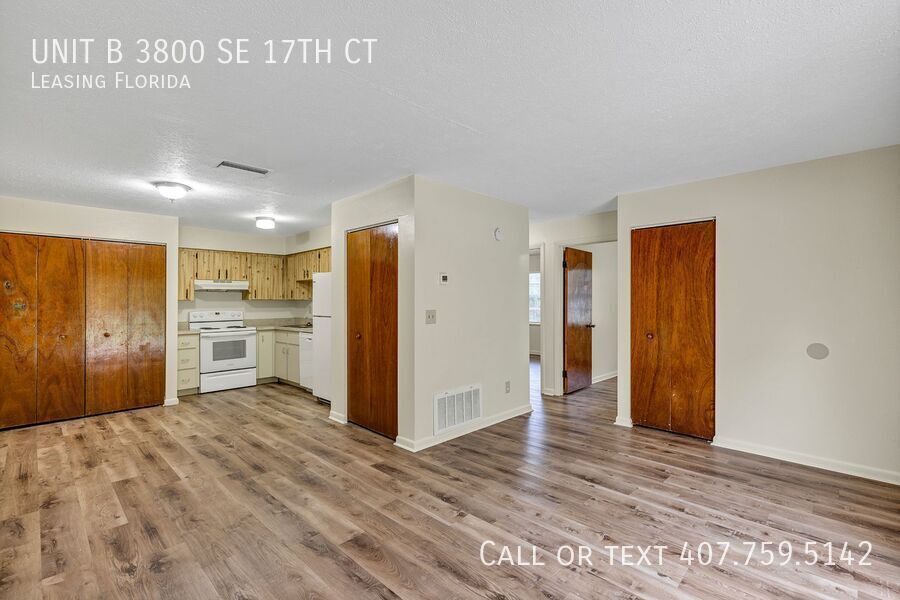 Welcome home to this freshly updated 2-bedroom, 1-bathroom apartment located in a well-kept community at 3800 SE 17th Ct, Ocala, FL UNIT B. Thoughtfully designed for comfort and convenience, this unit offers a spacious layout with brand-new interior paint, large windows that fill the space with natural light, and durable vinyl plank flooring throughout. The kitchen is fully equipped with a refrigerator, stove, and dishwasher, and opens up to a bright living area perfect for everyday living or entertaining. The full bathroom features a clean tub/shower combo and modern vanity. Each bedroom is generously sized with large closets for added storage. A sliding glass door leads to your private, patio—a rare find that offers the ideal space for outdoor relaxation or small gatherings. Enjoy outdoor space in a spacious yard and take advantage of off-street parking. For your convenience, the unit also includes washer/dryer hookups, central A/C. Professionally Managed by Leasing Florida, this residence offers reliable maintenance and professional support. Deposit-Free Move-In Available! We proudly offer Obligo, a security deposit-free alternative for qualified renters. Obligo conducts its own screening based on income, identity verification, and risk profile—giving renters flexibility without compromising security. Contact or write to us at