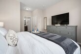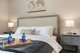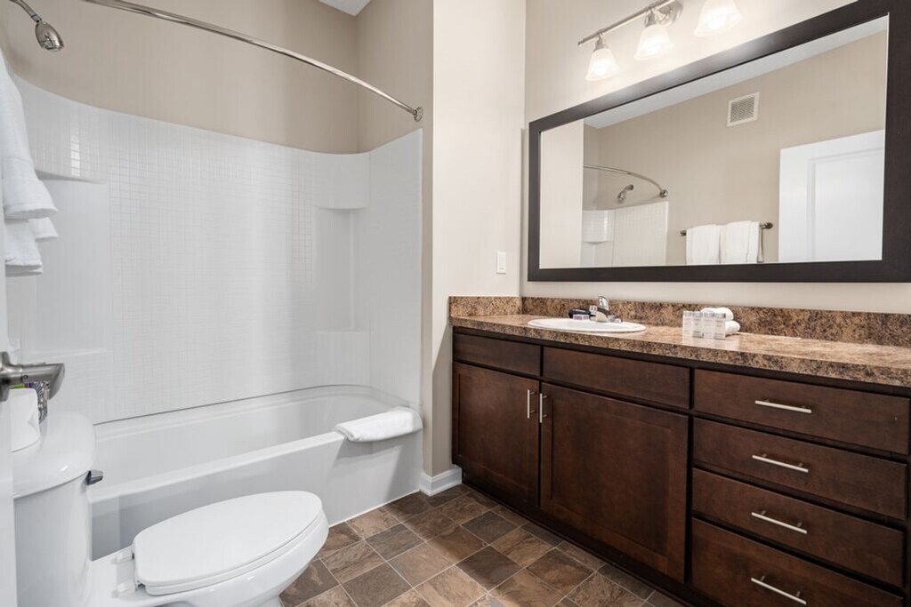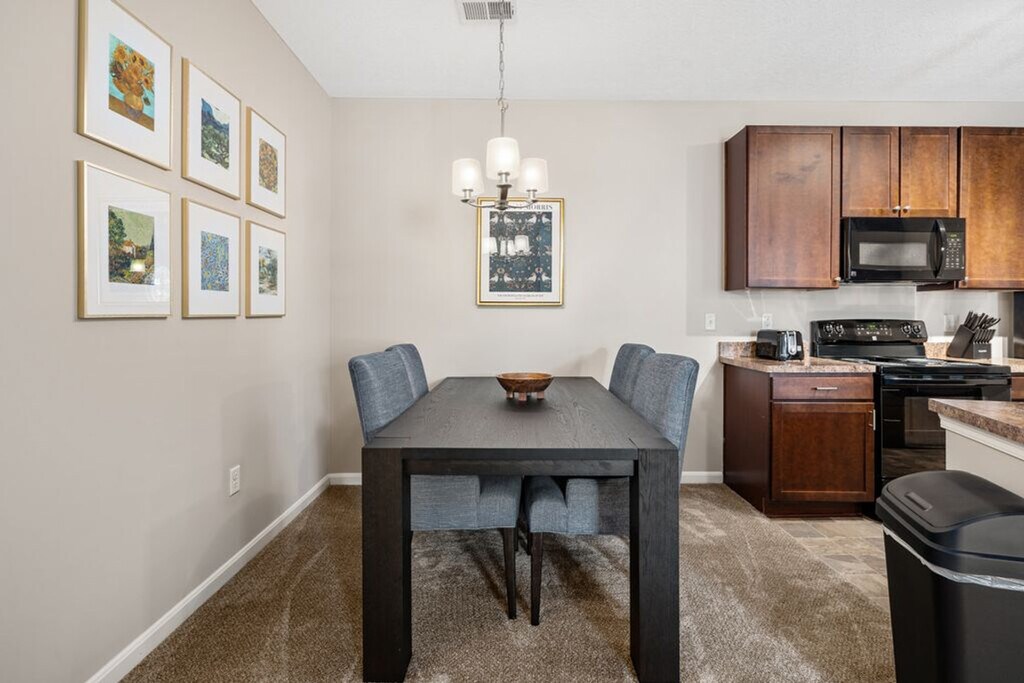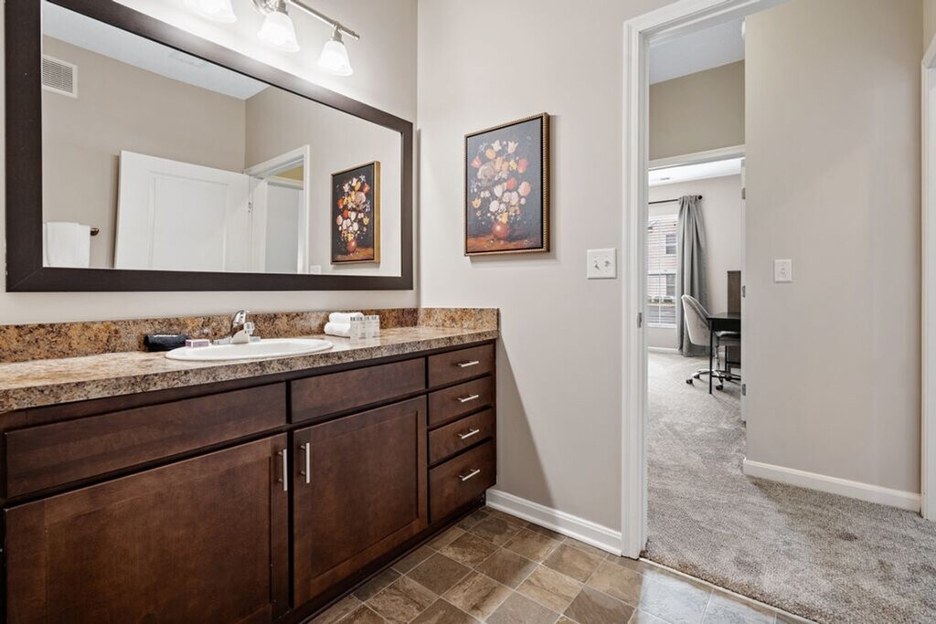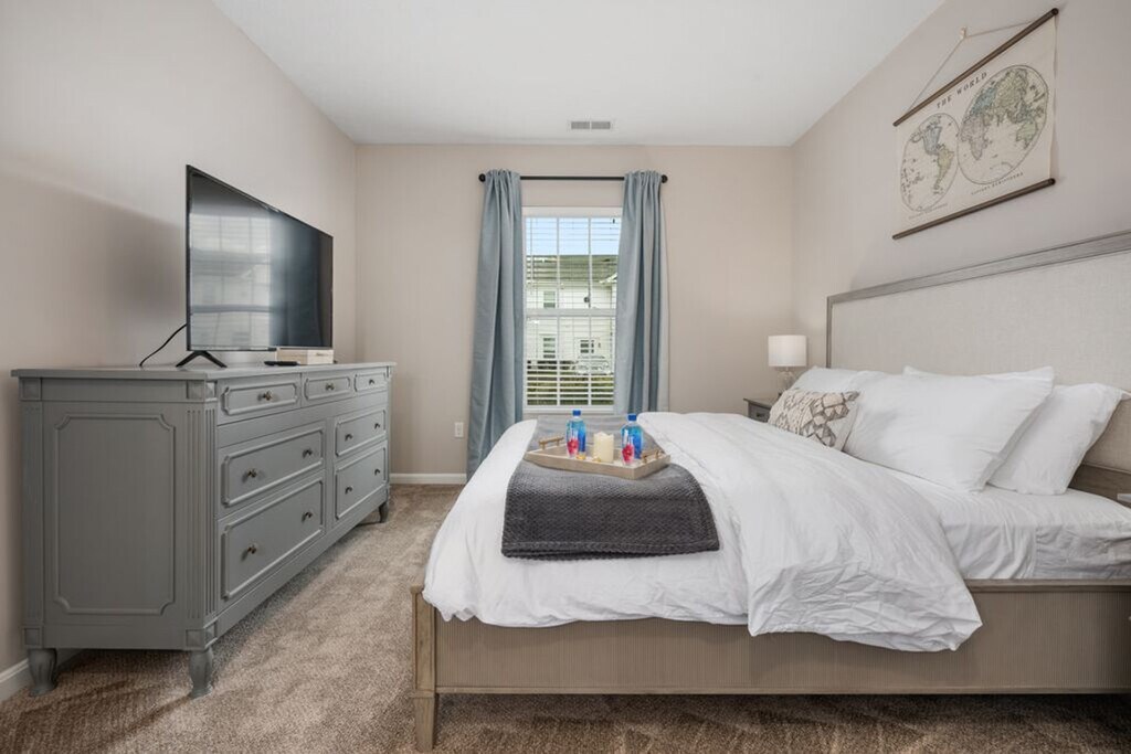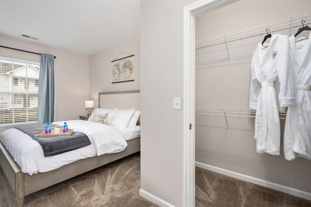 Welcome to this designer rental in a beautiful suburban community, perfect for stays of 30+ nights. This apartment features two bedrooms, one with a king-size bed and the other with a queen-size bed, and two full bathrooms. Enjoy the comfort of Frette bedding, super comfortable furniture from Arhaus, and brand new carpet as of 2024. The apartment is located on the ground floor with no steps and includes an attached 2-car garage and a private patio. This apartment is beautifully decorated by a local designer to make you feel at home. It offers a generous kitchenware selection, a full-size dining table and chairs, and an office desk. Stay connected with fast Wi-Fi and DirecTV, and enjoy the convenience of an in-unit washer and dryer. The apartment also provides access to a pool and gym. As a guest, you'll enjoy access to all the complimentary amenities at the clubhouse, including the fully equipped fitness center, coffee barista machine, business center, and outdoor pool. Located in the Albany Glen community in the New Albany area, this apartment is just a 5-minute drive from numerous restaurants and shopping areas. It's 15 minutes from CMH airport, 20 minutes to Intel, downtown, Polaris, and OSU/OSU Medical Center, and 10 minutes to Big Lots HQ and Easton Town Center. You can walk to a nearby park with a playground and walking path, as well as some of the area's best restaurants like High Bank Distillery and The Barn At Rocky Fork Creek. This is a pet-free rental due to brand new carpet and premium furniture. Easy self-check-in is available via a secure door keypad with a new code for each guest. ID verification will be required before your arrival. After booking, you'll receive a link to upload a photo of your ID and take a selfie for a quick background check, which takes about 2 minutes. If you need extra flexibility for a month-to-month stay, just let us know. Includes an office desk for your work-from-home needs. A laptop computer is not included. [SI]