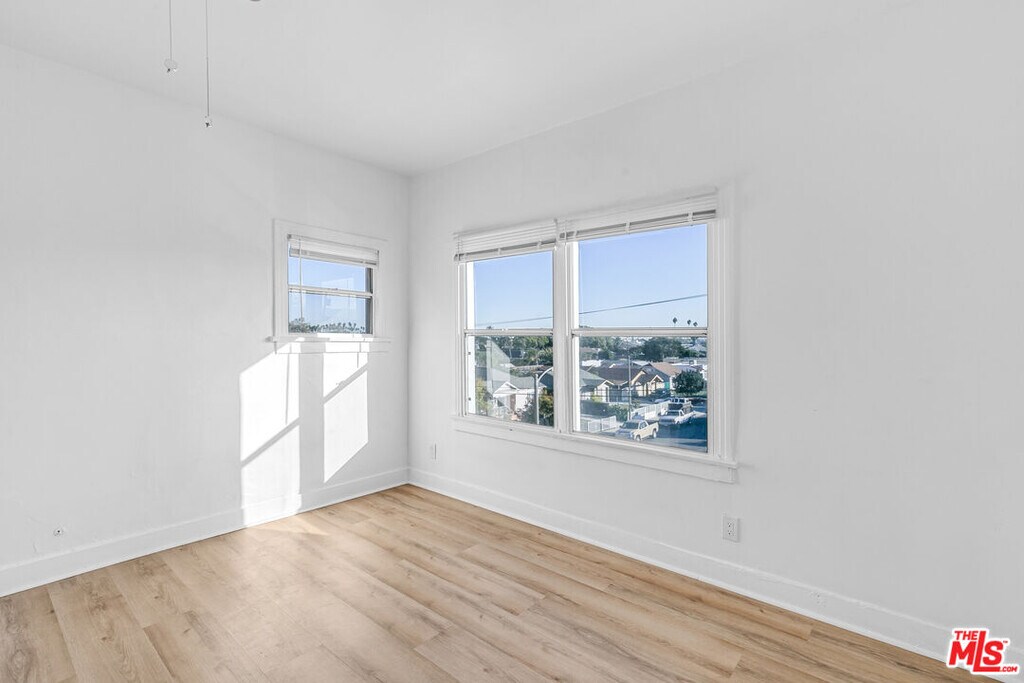 Step into this light-filled top-floor three-bedroom, one-bath apartment in the heart of Jefferson Park. Vintage charm runs throughout the home, from the arched entryways to the original details and hardwood floors that stretch across the entire space. The living room feels open and welcoming, perfect for kicking back or hosting a few friends. The galley-style kitchen pairs natural wood cabinetry with generous counter space, creating a functional spot for everything from laid-back brunches to busy weeknight dinners. Each of the three bedrooms gets great light and comes equipped with a ceiling fan for added comfort. The front bedroom opens onto a shared balcony, where you can take in truly stunning views, an unexpected bonus you'll look forward to daily. The vintage-style bathroom continues the character-forward vibe, while thoughtful touches throughout give the home personality and warmth. One assigned parking space is included, and yes, pets are welcome! On-site laundry isn't currently available, but we've heard that may be changing soon. With easy access to the 10 Freeway, Downtown LA, Culver City, and Mid-City, this centrally located gem sits in one of LA's most walkable and historic neighborhoods. It's a great spot to call home, and a rare one at that! MLS# 25613167
