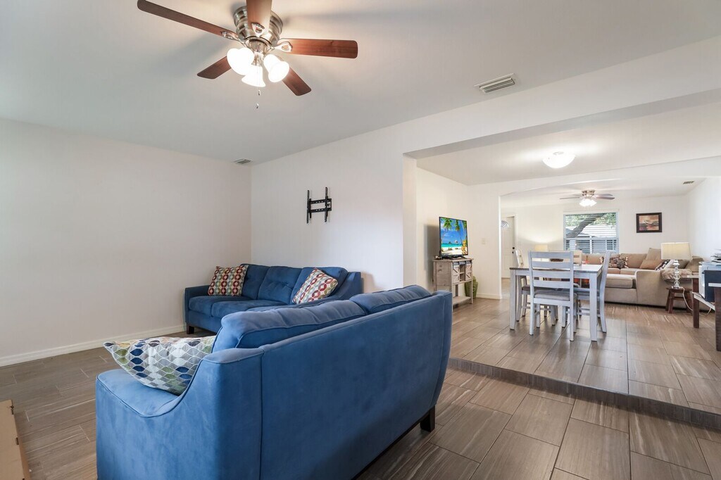 Fully remodeled and updated West Bradenton Location! Unfurnished 3 Bedroom 2 Bath Home with 1 Car Garage, Private fenced backyard, fully tiled living areas, carpeted bedrooms. The home has an updated kitchen, granite counter tops, stainless steel appliances, eat in area and a breakfast bar. Master bedroom has a large walk in closet, fully remodeled bath, walk in shower and dual vanities. 2 guest bedrooms with a shared bath, bonus room / family room off the dining and kitchen. A must see to appreciate. Call Alex to see this home anytime