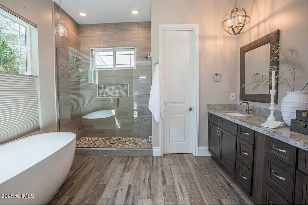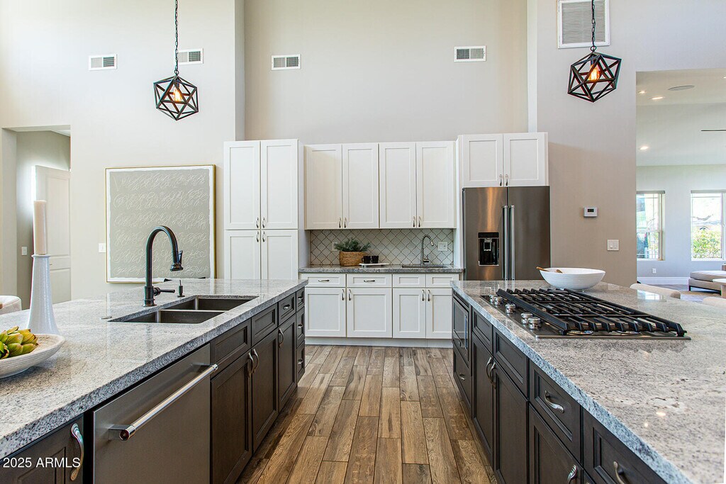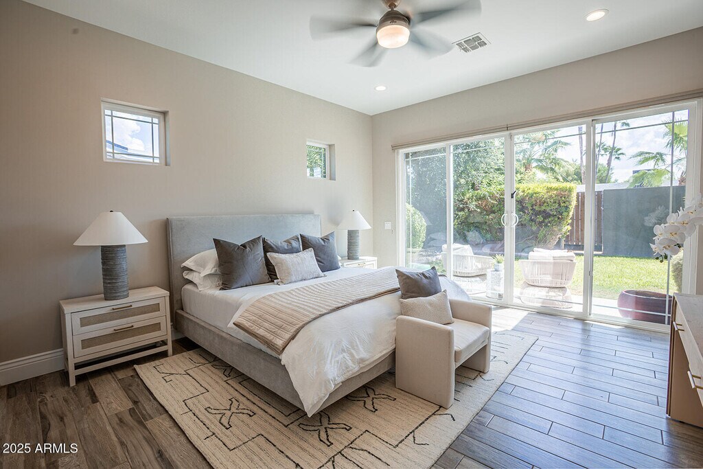 Built in 2016,this craftsman-style home offers modern comfort,designer finishes,and an ideal location near some of the area's best dining. The open floor plan features vaulted ceilings,floor-to-ceiling windows,and a spacious kitchen with white shaker cabinets,granite countertops,stainless steel KitchenAid appliances,and a five-burner gas range on its own island. The primary suite includes a large walk-in closet,sliding doors to the backyard,and a spa-like bath with a soaking tub. One guest room has its own en-suite,while the other two share a Jack-and-Jill bath. A generous laundry room adds convenience. With its modern design,quality upgrades,and prime location,this home is a prime rental in Arcadia Lite!