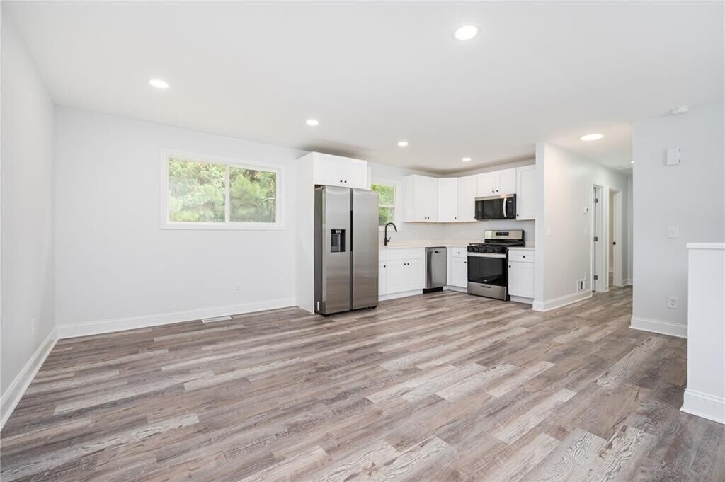 Fully Renovated Split-Level on Half an Acre Lease with Option to Purchase! Welcome to 3801 Hogan Road SW a stunning 5-bedroom,2-bathroom split-level home that's been completely renovated from top to bottom with high-end finishes and thoughtful upgrades throughout. Whether you're looking to lease or take steps toward homeownership,this beautifully updated residence offers the ideal combination of flexibility,style,and comfort. Situated on a spacious,level half-acre lot,this 1,800 sq ft home features an open-concept layout filled with natural light. The brand-new kitchen shines with granite countertops,stainless steel appliances,modern cabinetry,and upgraded lighting perfect for hosting or everyday living. Luxury vinyl plank flooring flows seamlessly throughout the home,complemented by fresh interior paint and elegant design touches. Both bathrooms have been fully upgraded with stylish tile,new vanities,and contemporary fixtures. The lower level includes a finished rec room,ideal for a home office,gym,media room,or play area. You'll also enjoy ample storage space inside and out,giving you the room you need to stay organized and clutter-free. Plus,all major systems including plumbing and electrical have been updated for peace of mind. Step outside to your private,flat backyard,offering plenty of space for entertaining,pets,or gardening. The freshly landscaped front yard,new exterior paint,and covered carport enhance the curb appeal and functionality. Located just minutes from Hartsfield-Jackson Atlanta International Airport and directly across from Deerlick Elementary School,this home also offers quick access to I-285,I-75,I-85,and public transportation making your commute a breeze. You're also just around the corner from Camp Creek Marketplace,featuring an array of restaurants,shopping,LA Fitness,and a movie theater. Don't miss this rare opportunity to lease with the option to purchase a fully updated,move-in-ready home in one of Atlanta's most connected and convenient locations! Renter is responsible for all utilities. Property is available for lease only as well as lease purchase. No smoking inside or out.