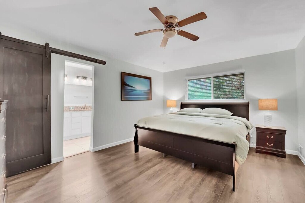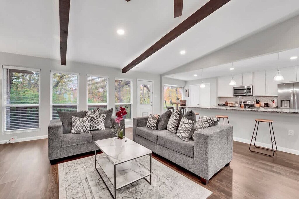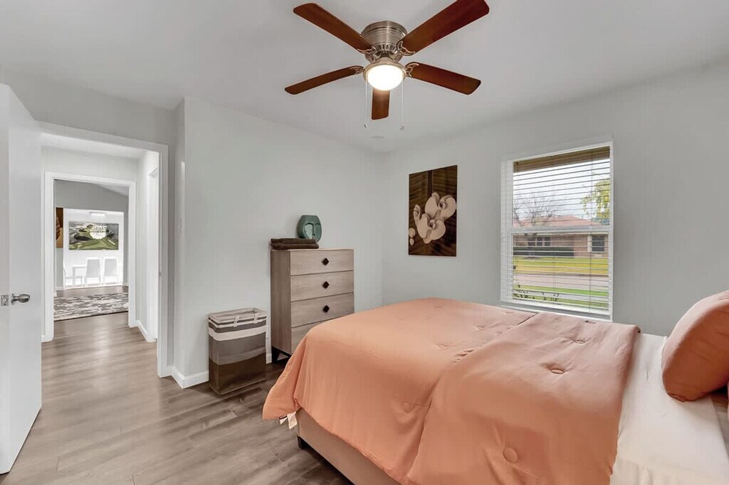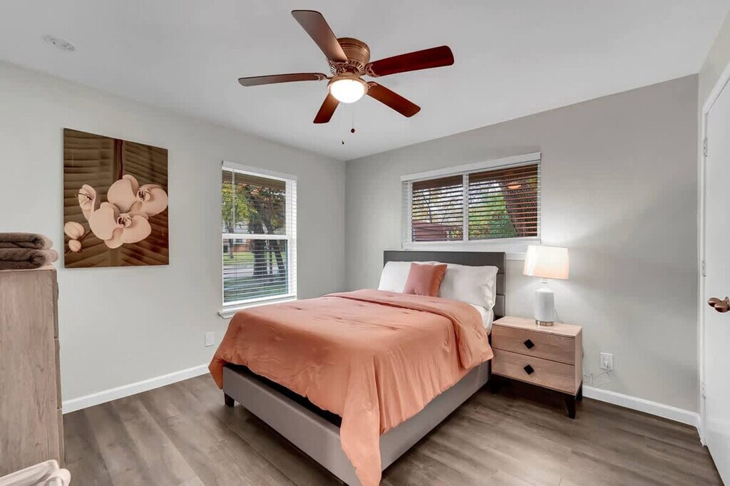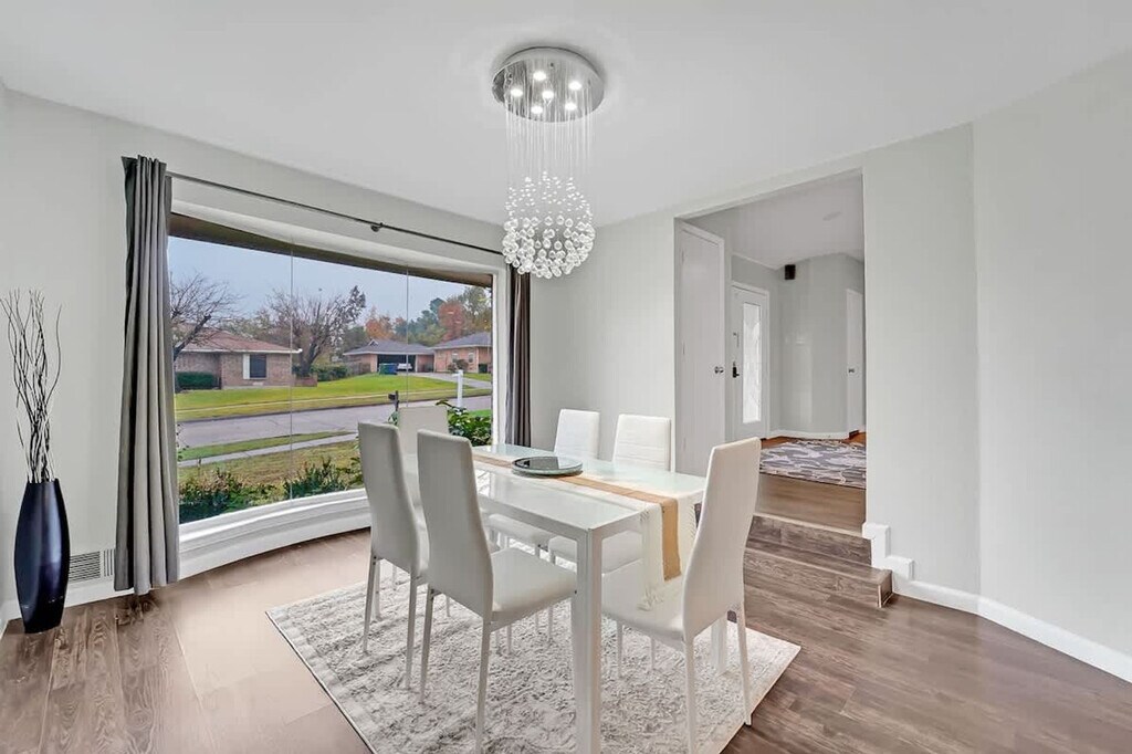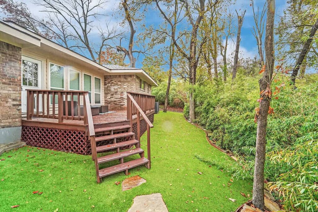 Experience a charming getaway in centrally located Garland, TX. This uniquely designed 4-bedroom, 3-bathroom home comfortably accommodates up to 8 guests, making it perfect for families, friends, groups, or business travelers seeking both relaxation and convenience. Feel at home in this perfect home. This home features a modern kitchen with stainless steel appliances and all the cookware you need, a cozy living area with a smart TV, and a dining area that seats six. Relax on the private deck with scenic views or enjoy the large, private landscaped backyard. Free on-site parking is available. Nestled near Downtown Dallas and Garland City Square, this home offers easy access to dining, shopping, and entertainment while providing a serene suburban escape. The South Garland area offers a classic North Texas charm with its established tree-lined streets and friendly community atmosphere. Its prime location offers easy access to Dallas and Richardson while maintaining a tranquil suburban setting. The area is conveniently connected to major highways, including I-635 and I-30, making it easy to explore nearby attractions such as Downtown Dallas, Firewheel Town Center, and White Rock Lake. No smoking is allowed inside the house, and no parties or events are allowed. No pets are allowed. Violations such as parties, damages, or smoking indoors may result in fines of $1,000 or more.