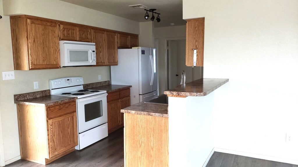 Trail Estates 3 bed, 2 bath home with 2 car garage. Upgraded wood laminate flooring throughout except for carpeted bedrooms. Barn sink in kitchen and bay windows in the master bedroom. Very spacious backyard with a gazebo.