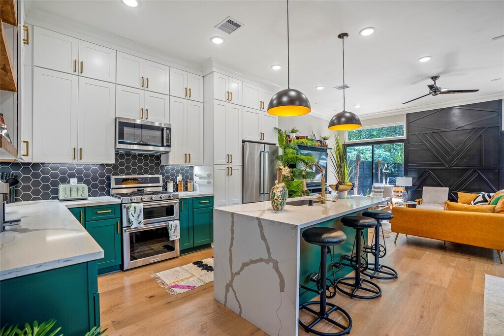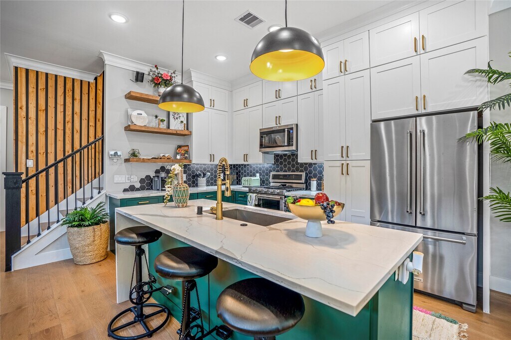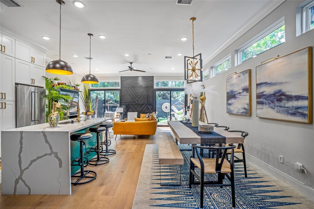 Prime location with easy access to I-10,Downtown,the Medical Center,and Museum District. This home offers a spacious open-concept layout on the main level,ideal for both everyday living and entertaining. The chef’s kitchen features a KitchenAid appliance package,including a 5-burner gas range with double ovens,and flows seamlessly into the living area and out to the large backyard for effortless indoor-outdoor living. Backyard includes a wood deck,artificial grass and a spa. Upstairs includes three bedrooms,three bathrooms,and a versatile bonus/flex space ideal for a home office,media room,or guest area. MLS# 44337313