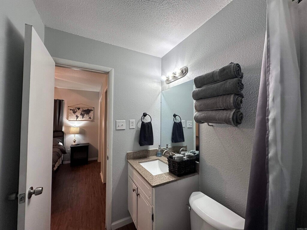 Welcome to Texarkana & our fully furnished home with utilities included. Located in the heart of Texarkana, so convenient to I-30 & both St Michael's Hospital & Wadley Regional Medical Center We have open concept kitchen to living room & king sized bedroom, both featuring Roku smart TV's for entertainment in your off hours. Both the kitchen & bathroom feature granite countertops, bathroom has tub/shower combo with attractive tile surround. Occupancy limit of 2 people. Ask about our other units.