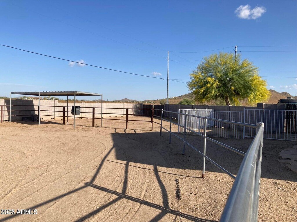 Sought after Horse Property in Desert Hills. Freshly Painted and Brand New Carpeting. This home is ready to move in. Featuring 3 bedrooms,2 bath,Vaulted Ceilings,Open spacious Kitchen includes large Island and plenty of cabinets. Back yard with extended covered patio,2 stall mare motel,fenced turn out,RV gate for easy access. Oversized 2 car garage with Cabinets. Master retreat with double sinks,separate tub and walk in shower. Breathtaking views,no need to trailer your horse you can ride right out into the Desert from your back yard. Great location,just minutes from I-17,shopping & Lake Pleasant,No HOA here,bring your toys there is lots of room. This is a Non Smoking Property.