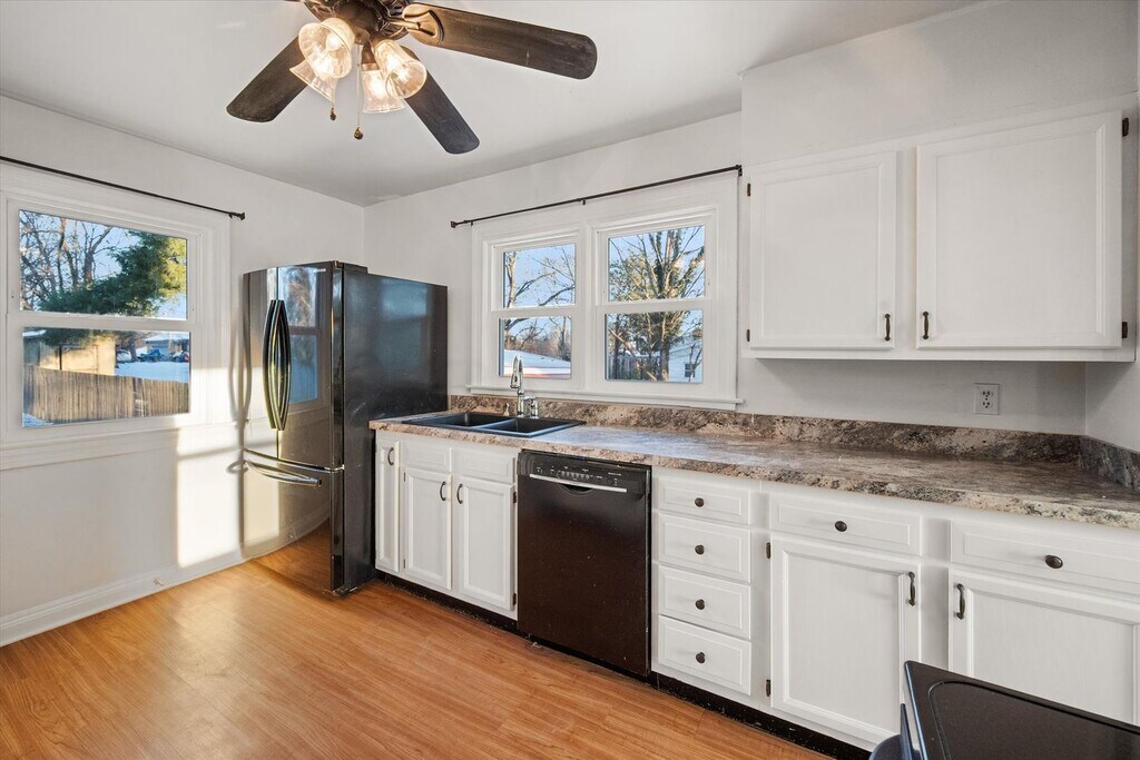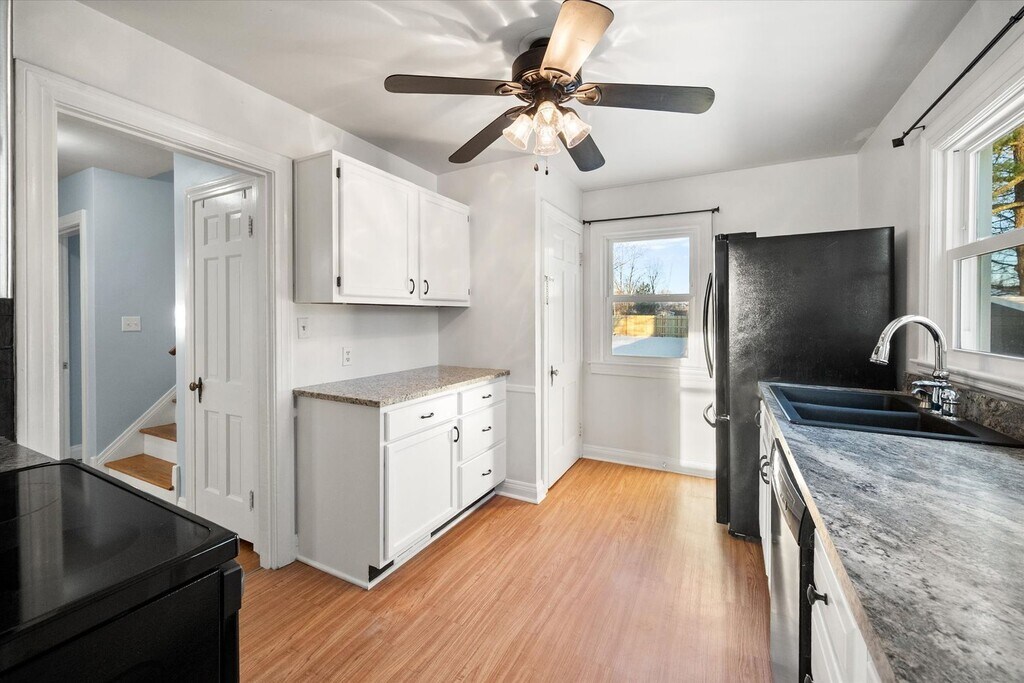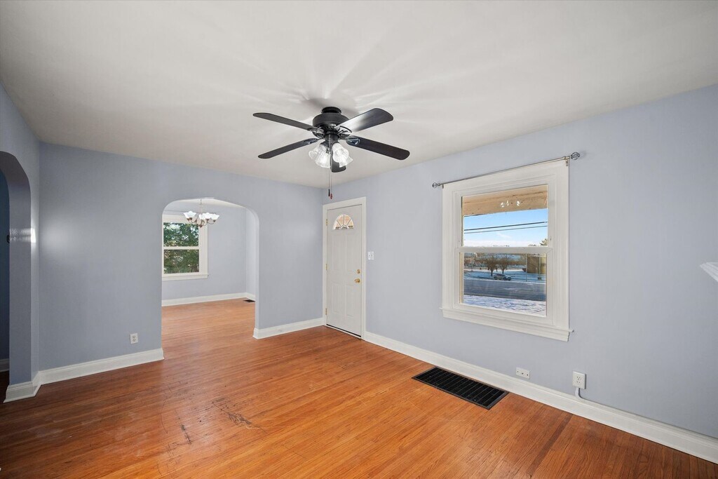 Move-In Ready! This charming two-story home features 3 bedrooms and 1 full bath, with the primary bedroom conveniently located on the first floor. Enjoy relaxing on the front porch and the warmth of beautiful wood floors throughout. The updated kitchen and fresh neutral paint make this home easy to personalize to any style. Additional features include washer and dryer included, a full unfinished basement for extra storage, a two-car carport, and a fully fenced yard—with lawn mowing included. A storage shed provides even more space. Perfectly situated near the heart of downtown Jeffersontown, this home offers comfort, convenience, and classic charm. Call to schedule a showing. Apply online at