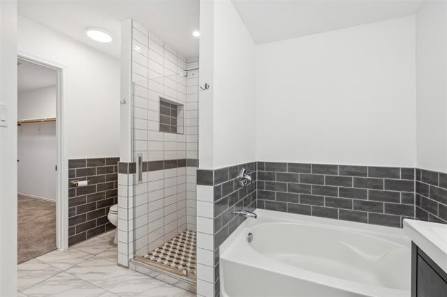 Move-in ready home in Franklin Heights, ideally located in the heart of McKinney, near Hwy 75 and SH 121, offering easy access to shopping, dining, and entertainment. This charming single-story home is nestled on a quiet cul-de-sac and is within walking distance of McNeil Elementary. It features a spacious open floor plan with 3 bedrooms, 2 bathrooms and a 2-car garage. The updated kitchen boasts granite countertops, stainless steel appliances, a glass subway tile backsplash and a large pantry. A wood-burning fireplace adds warmth and character to the living area. The primary suite has a large walk-in closet and a luxurious ensuite bathroom with dual sinks, a soaking tub, separate tiled shower, and elegant tile accents. The home features laminate and tile flooring in the living areas, with plush carpet in the bedrooms. Perfect for comfortable and convenient living! Kitchen refrigerator, washer and dryer will remain with lease.