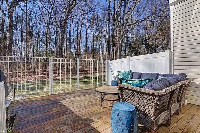Property Id: 2204394 Townhome with open concept great room/kitchen combination. Adjacent to the great room is the main level half bath, laundry, a coat/storage closet plus storage under the stairs. Engineered flooring throughout, 2"Blinds, beautiful marble and tile in primary and secondary bath. Attic Storage. Step outside onto the expansive deck with privacy fence plus open rail metal fence with gate to enhance wooded view. Spacious primary w/vaulted ceiling, walk-in plus second closet & ceiling fan. Elegant primary bath features marble & tile with a large shower equipped with square rain head plus a hand held sprayer. A second generously sized bedroom and bath complete the second level of this amazing home. Two assigned parking spaces. The community also offers community pool and fitness center. Northwest Greensboro sits just 10 miles outside the downtown area. Lake Huggins and Lake Brundt are very accessible.. No smoking in the house allowed. No pets are allowed.