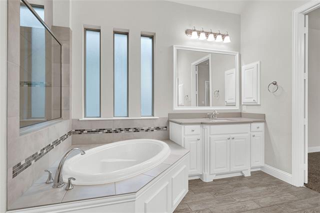 Welcome home! This elegant 4-bedroom, 3-bath North McKinney home offers a thoughtful layout with natural light throughout. Enter the foyer with high ceilings and elegant staircase that opens to below and enjoy a main floor featuring a guest bedroom with full bath, private study, formal dining, and a spacious primary suite with dual sinks, quartz countertops, walk-in shower, garden tub, and oversized walk-in closet. The kitchen is spacious and functional with granite counters, stainless steel appliances, ample cabinet space, a large island, an oversized walk-in pantry, and a prep counter area perfect for family gatherings or buffet style entertaining, flowing into the family room with fireplace and backyard access. Step outside to the extended covered patio for relaxing or entertaining. Upstairs, a media room, loft, two bedrooms, and full bath provide extra space. This well-maintained home has recent maintenance and fresh touch-up paint making it move in ready for your convenience. The full-size utility room allows you to bring your washer and dryer and you may also bring your fridge. Residents enjoy resort style amenities including a pool, playground, pavilion, and more. Conveniently located near shopping, dining, entertainment, and Highway 75. With plenty of space and elegant touches throughout, this home is ready to welcome you home.