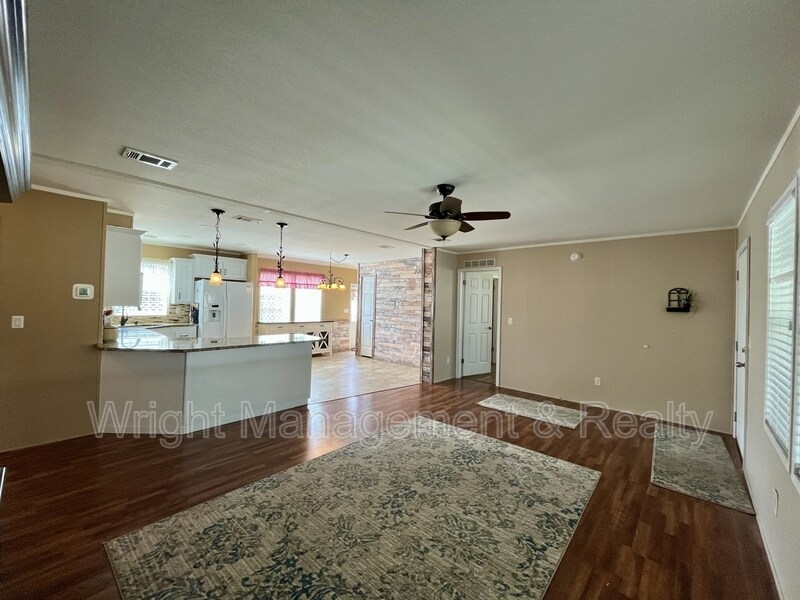 ATTENTION RENTERS: Check out this 55 years and over community with a well maintained manufactured home that has 3 BEDROOMS / 2 BATHROOMS and an ENCLOSED PORCH/WORKSHOP. WATER, LAWN MAINTENANCE & TRASH INCLUDED. TENANT RESPONSIBLE FOR ELECTRICITY & CABLE. PETS ALLOWED with a $250 non-refundable pet fee. This 1456 sq ft home has a large living room that flows into the dining room with a large open Kitchen. Comes with updated APPLIANCES. Tile and vinyl plank flooring throughout main areas of the home. The MASTER BEDROOM has a walk-in closet and plenty of shelving. The master bathroom has double vanity sinks, a walk-in shower, and a large linen closet. WASHER/DRYER INCLUDED. Located just down the street from the community center, this home provides easy access to a pool, shuffleboard courts, a gazebo, and a wooden swing where you can enjoy your morning coffee or watch the local wildlife. Ramblewood Village is a vibrant community that hosts potlucks, parties, and social gatherings. The beautifully landscaped park, with its mature trees and scenic walking paths, is perfect for daily strolls and peaceful moments. QUALIFICATIONS: Must be 55 years of age or older to rent this property. 12 month lease required. Credit score of 620 or higher preferred. Gross Household Monthly income must be over $3800 per month. All background checks will be conducted.