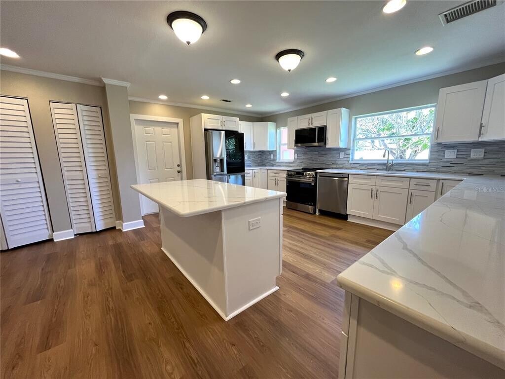 Nestled in the Belle Vista neighborhood,this 3 bedroom 3 bath home with an oversized 2 car garage and over 2800 square feet is a must see! Home has an open floor plan which includes an office,huge master suite with a walk-in closet,large soaking tub,and separate shower. Kitchen is a dream that has recently been updated with new cabinets,backsplash,counter tops and appliances. Other recent updates include paint,flooring,new vinyl fence in the yard,and new shed. There is an oversized parking pad with enough room to park a small boat or RV. The owner pays for yard maintenance and pest control. Shown by Appointment only. This is a long term rental of a minimum of 12 months. Pets will be considered with a non-refundable deposit. Tenant must obtain renters insurance. Available for immediate move in. MLS# TB8409219
