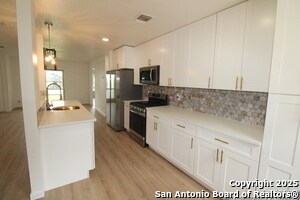 Beautiful one story 3 bedroom 2 bath home features an open concept floor-plan with two living spaces/game room! Upgrades include new flooring throughout, no carpet , fresh paint, brand new soft close kitchen cabinets , quartz countertops, stylish backsplash, under-mount kitchen sink, stainless steel appliances, gas cooking, updated lighting, and solar panels. Large lot in a cul-de-sac.