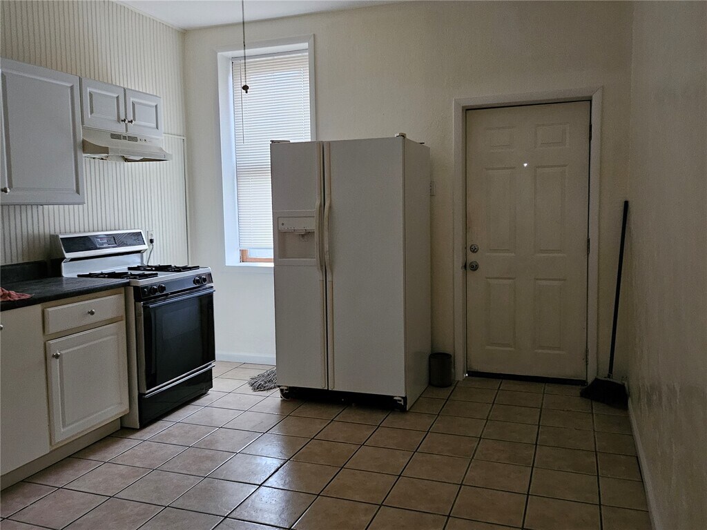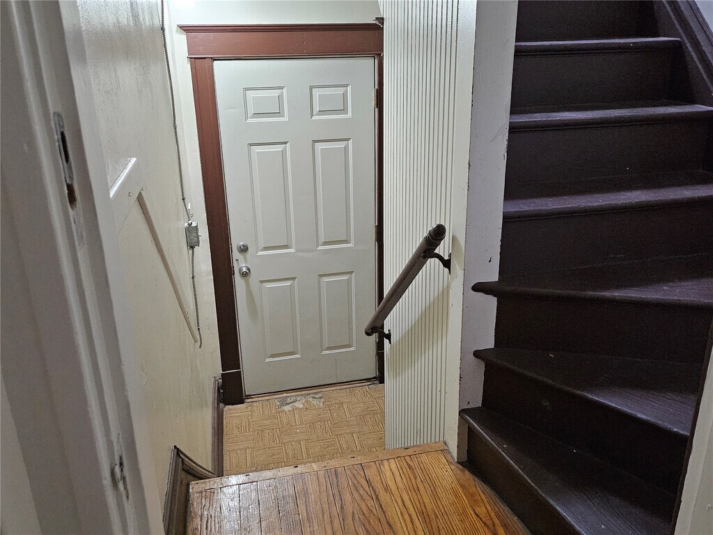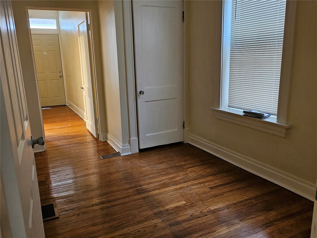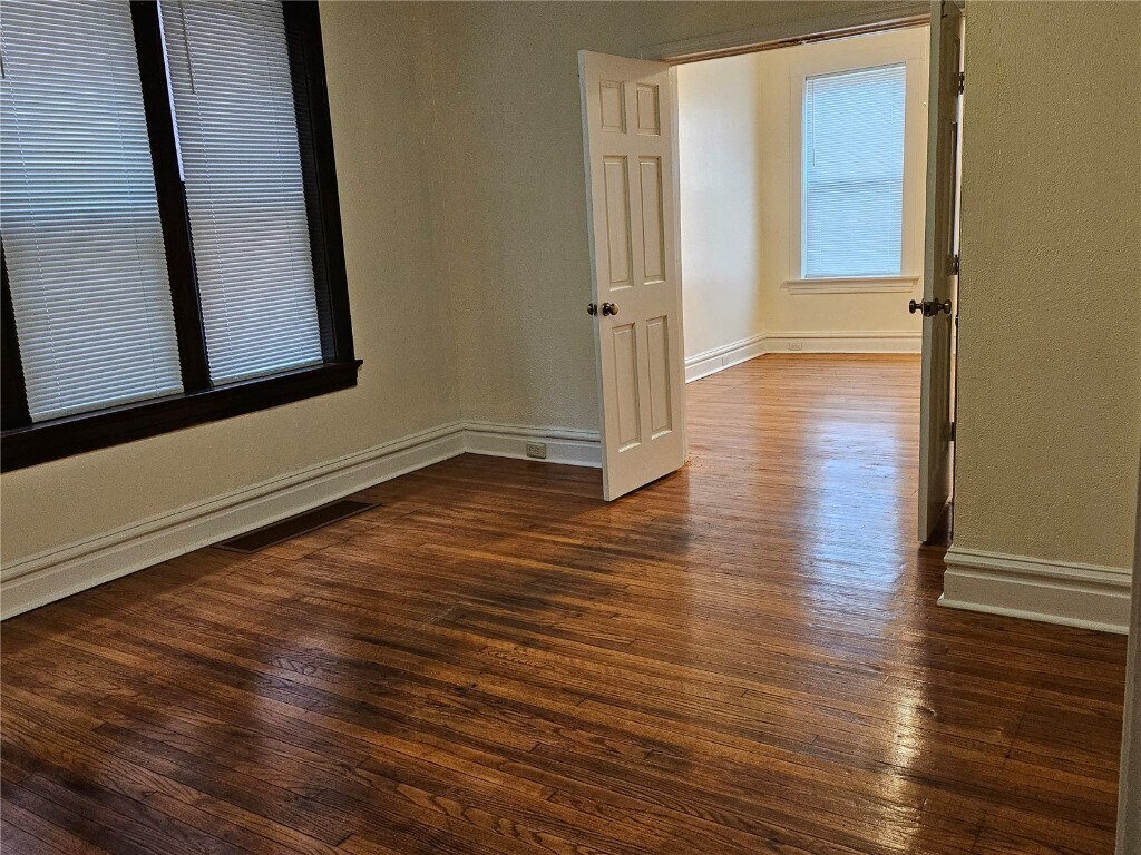 Clean updated Apartment with 2 to 3 bedrooms. Wood Flooring, Updated eat in Kitchen with plenty of cabintry, small pantry. Large rooms. Stove & Refrigerator for Tenant Use. Laundry hook up in the basement. Some storage. Covered Deck and Some yard fencing. Close to Bus line and shopping.